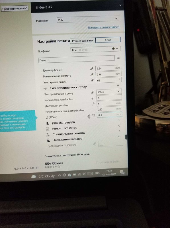 прошу прощение Ender-3 пластик PLA а какие конкретно параметры нужны?