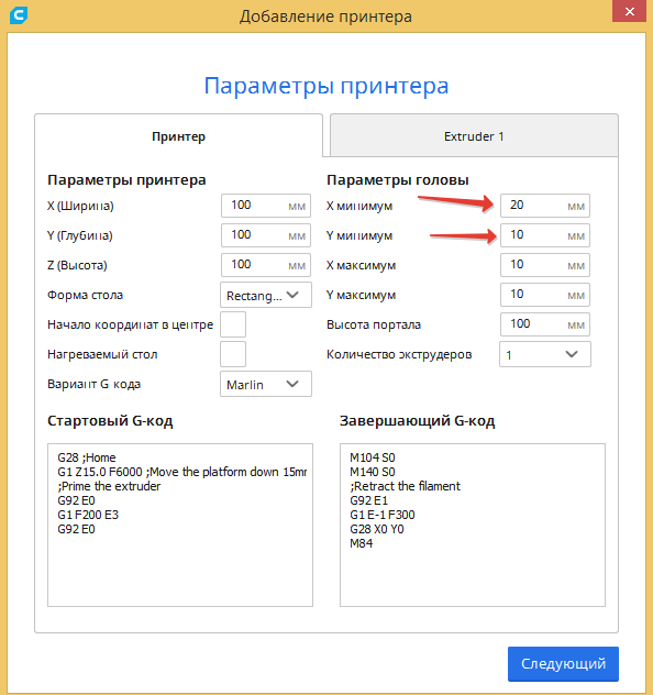 Само собой с минусом. Тогда при обнулении принтер будет показывать отрицательные координаты, а в слайсере вышеуказанные координаты само собой обнуляем. Значения мои, у вас будут свои!