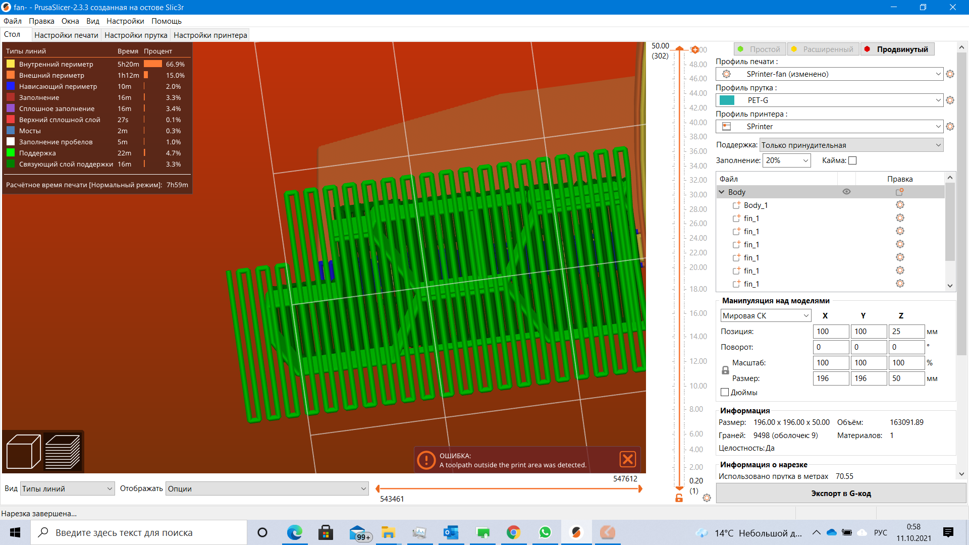 И какой-то огромный зазор между поддержками и поддерживаемой плоскостью получается (это уже дальше)...