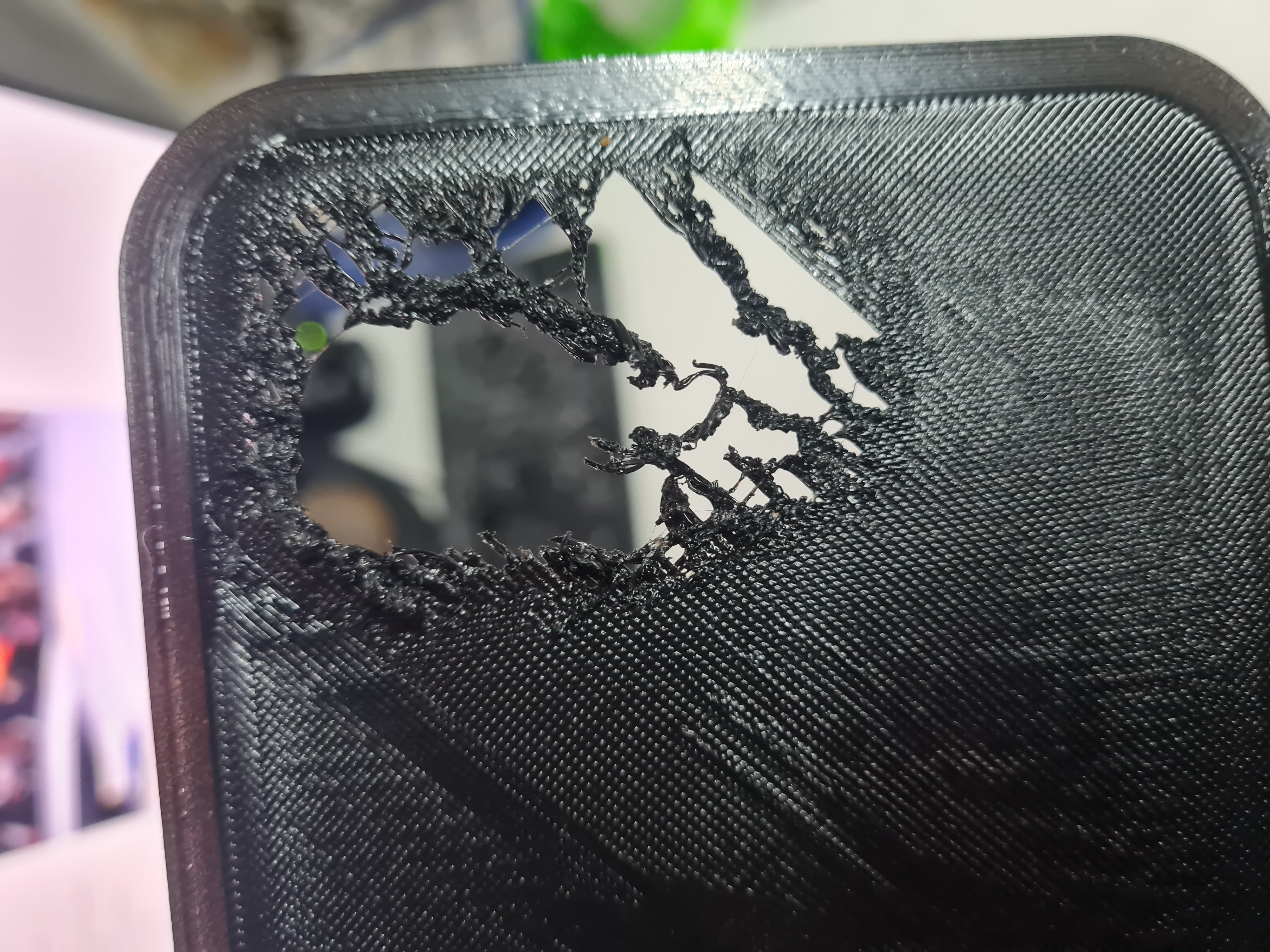 Здравствуйте, имею Ender 3 pro со спрайтом, пластик Petg от Мако, темп 235 на 70, скоростя стенок 25, заполнения 50, разглаживания 25, ни с того ни с сего после разглаживания на верхних поверхностях стали появляться такие вот разрывы и отверстия, при этом до этого при этом же файле джикода и при этом же пластике ничего подобного не было (катушка также самая), пробовал увеличивать поток на верхних и внутренней верхней линии, не помогает, скорость разглаживания уменьшал, сушил пластик, ничего не помогает, был ещё черный perg от esun, пробовал и на нем, такие же разрывы и отверстия, хотя до этого он тоже печатал идеально. Теперь не могу понять куда "копать"?
