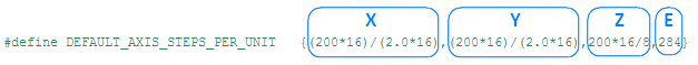 #define DEFAULT_AXIS_STEPS_PER_UNIT   {(200*16)/(2.0*16),(200*16)/(2.0*16),200*16/8,284}  // default steps per unit for Ultimaker
