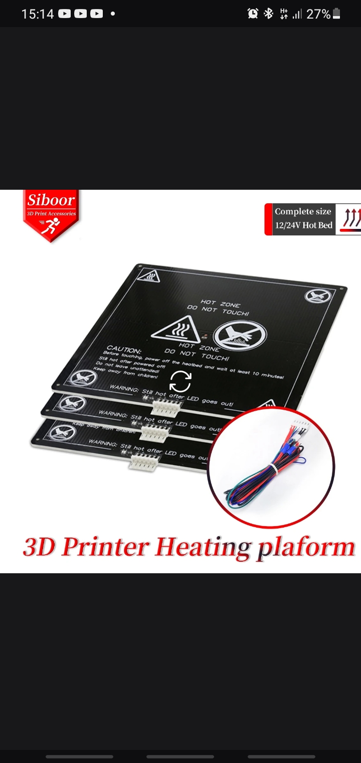 Добрый день! Строю новый принтер на электронике 24 вольта, и вдруг я вспомнил, что алюминиевый нагревательный стол,имеющийся в наличии, который я хотел поставить как временный вариант расчитан на 12v и он не переделывается на 24 (фото стола прицеплю)