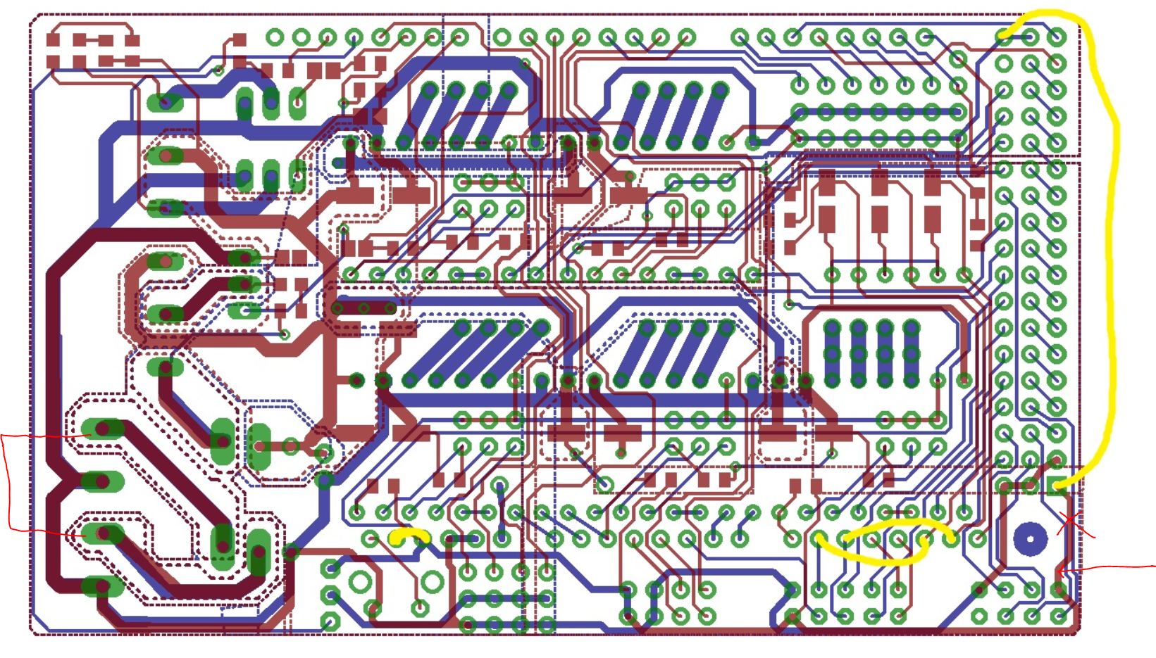 Затем паяем перемычки и в одном месте перезаем дорожку