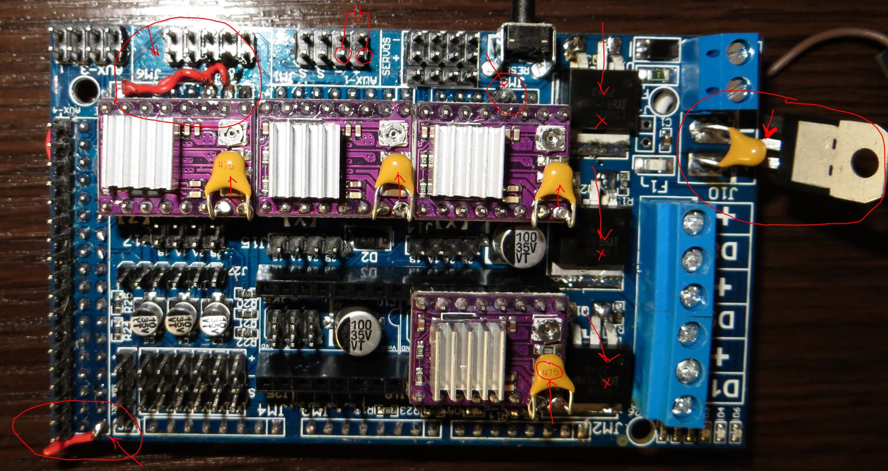 Припаиваем керамические конденсаторы 4,7 мкф и паяем на съемных колодках дополнительный электролит на линию 3,3 вольта.