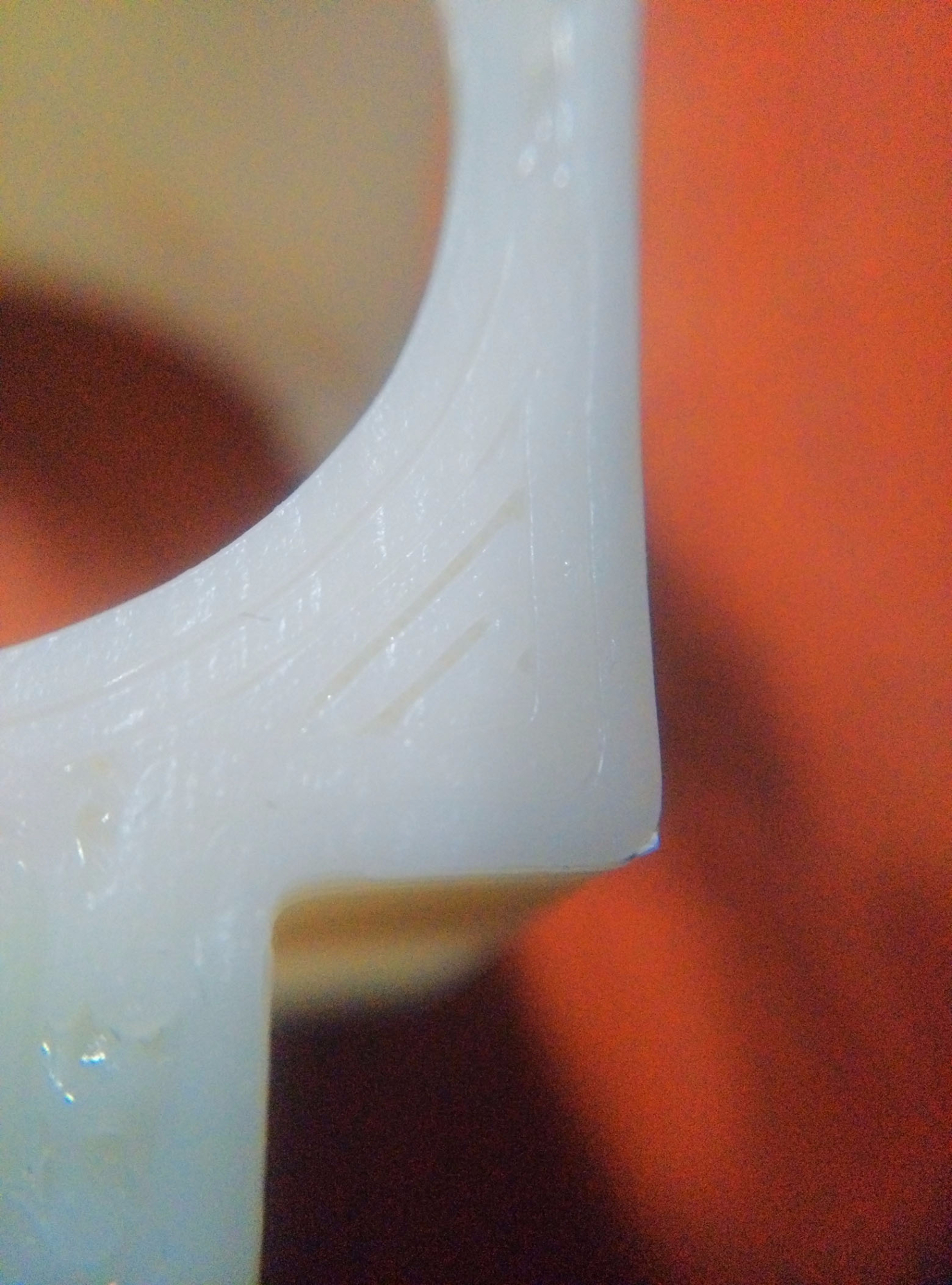 Расстояние вроде маленькое, но в 1 слое все равно встречаются пробелы. Неужели еще уменьшать ? Сам первый слой не успел сфоткать, вот так выглядит уже напечатанная деталь.