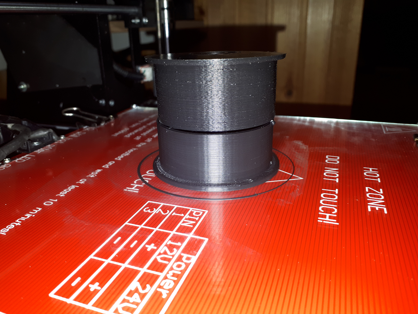 Начало этого дела я не отловил,сопло пошло пахать клей на столе,нажал пауза,поднял стол,припарковал,все штатно,нажимаю рестарт,мозги радзумывают с температурой,потом когда параметры входят в норму он паркуется по трем координатам и потом с прааативным ззззз вдавливается в стол аж пружинки проседают,чуть приподнимается и едет опять пахать стекло.Опустил стол немного вроде бы пошла печать,но из-за того что несколько раз сопло запиралось то ли экструдер зализался,но больше похоже что сопло забилось,даже пластик из под сопла через резьбу немного вылез.