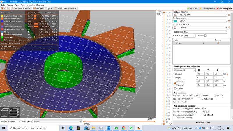 И какой-то огромный зазор между поддержками и поддерживаемой плоскостью получается (это уже дальше)...
