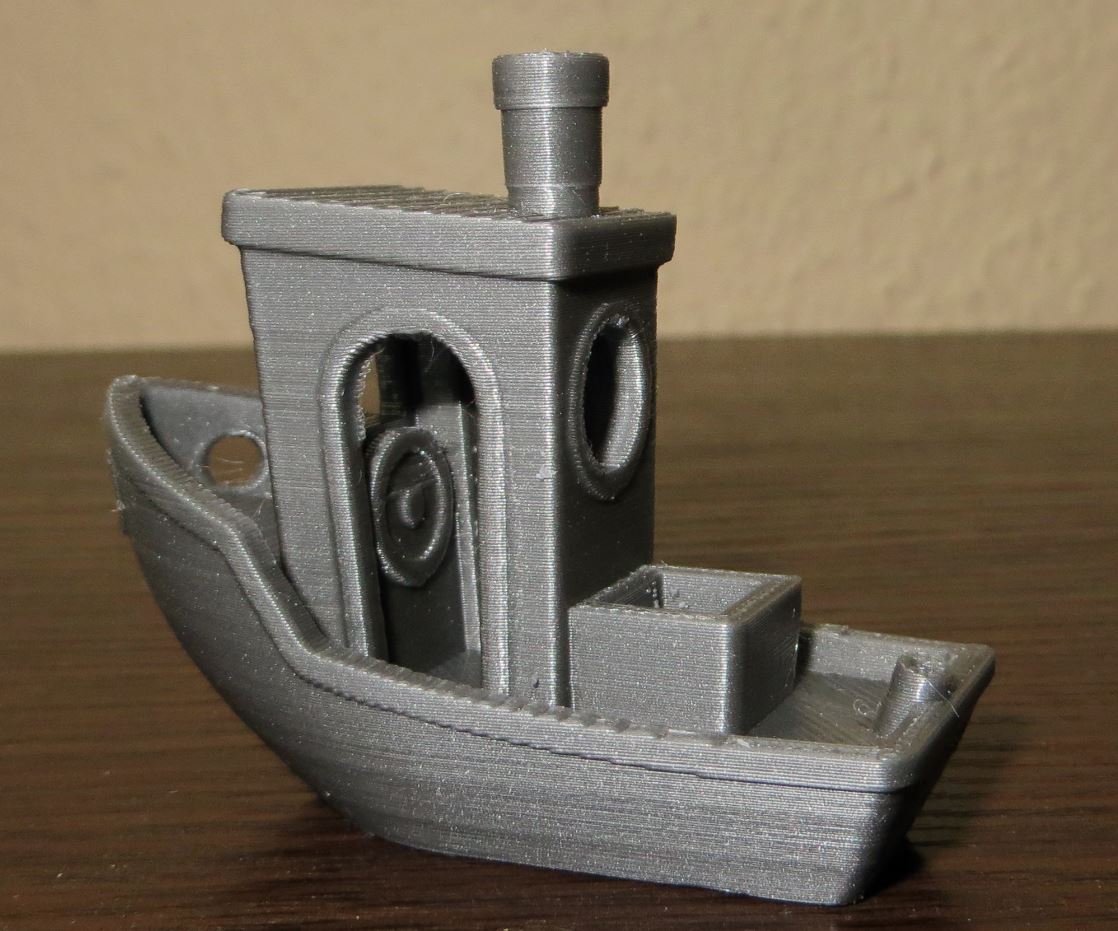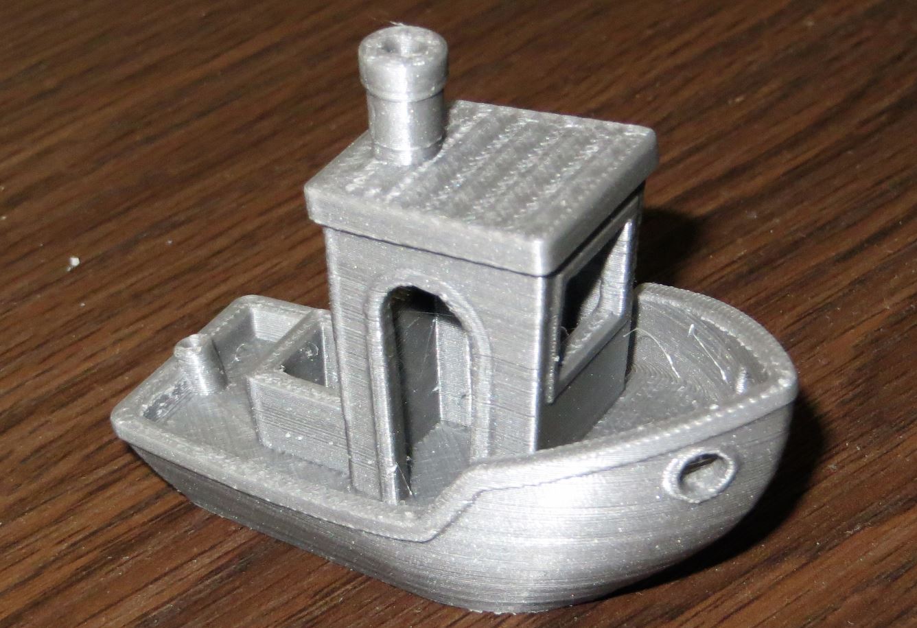 Вот тестовый кораблик на данной прошивке по размеру 100% от величины модели. Кораблик сразу после печати -специально мелкие "сопли" и кое где "бороду" не убрал.