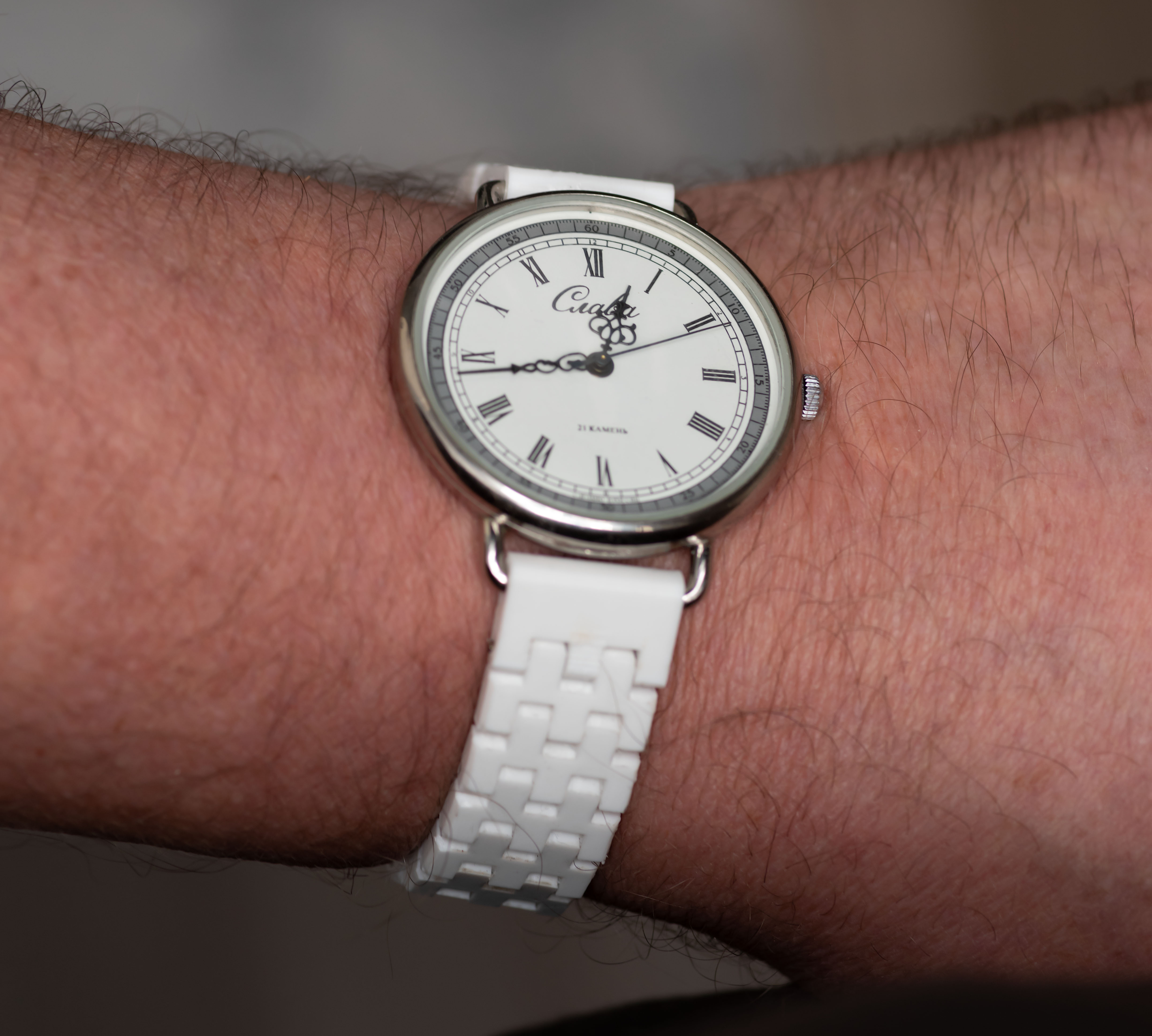 Это я уже выкладывал в топике "Что печатать на FDM-принтере?" Браслет напечатан методом print-in-place из PET-G, от 1-го звена до замка включительно, является полностью рабочим и таким же надежным, как китайский кожаный ремешок. Имеет ширину 17 мм и толщину 4 мм. Первое звено браслета имеет конструкцию, позволяющую зафиксировать его на неразъемном кольце, или ушке часов. Аналоги этого конструктивного решения мне не известны.