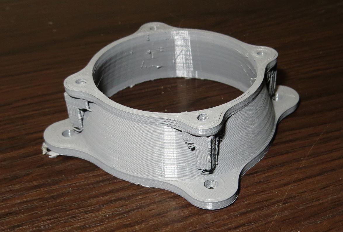 Запустил сейчас на печать на Спринтере переходник для вентилятора 50*60 - на скорости 165 мм/сек - печатает и не зужжит. То есть на скорости на 15 мм/сек выше чем вообще возможная черновая печать на моём принтере. А тут печатается и на вид качество даже нормальное. Вернее уже напечатал.