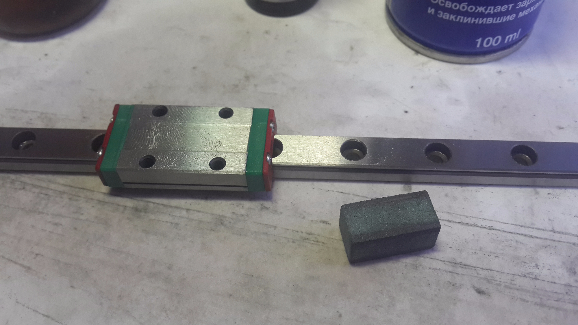 Есть у меня тоже такой брусочек, но пилить им рельсы не рискнул. Потому что там канавки сферические под шарики, а бруском эту полусферу можно превратить в плоскость. Значит шарики будут контачить с канавкой точечно и быстро прокатают себе "колеи". Ну и в результате, каретка будет болтаться на рельсе. Так что на мой взгляд, притирание пастой ГОИ - наиболее грамотное решение. Смущает только то, что вряд ли можно полностью вымыть абразив, он всё равно останется на металле. И от этого рельсы могут быстрее изнашиваться (сами себя истирать).