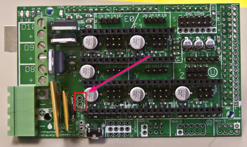Скажите, видел как у кого-то на фотках в выделенном красным месте был разъем двухконтактный. Он на него вешал куллер. Могу ли я впаять туда разъем и повесить свой куллер платы Ramps? или если не впаяно то и питания там не предусмотренно?
