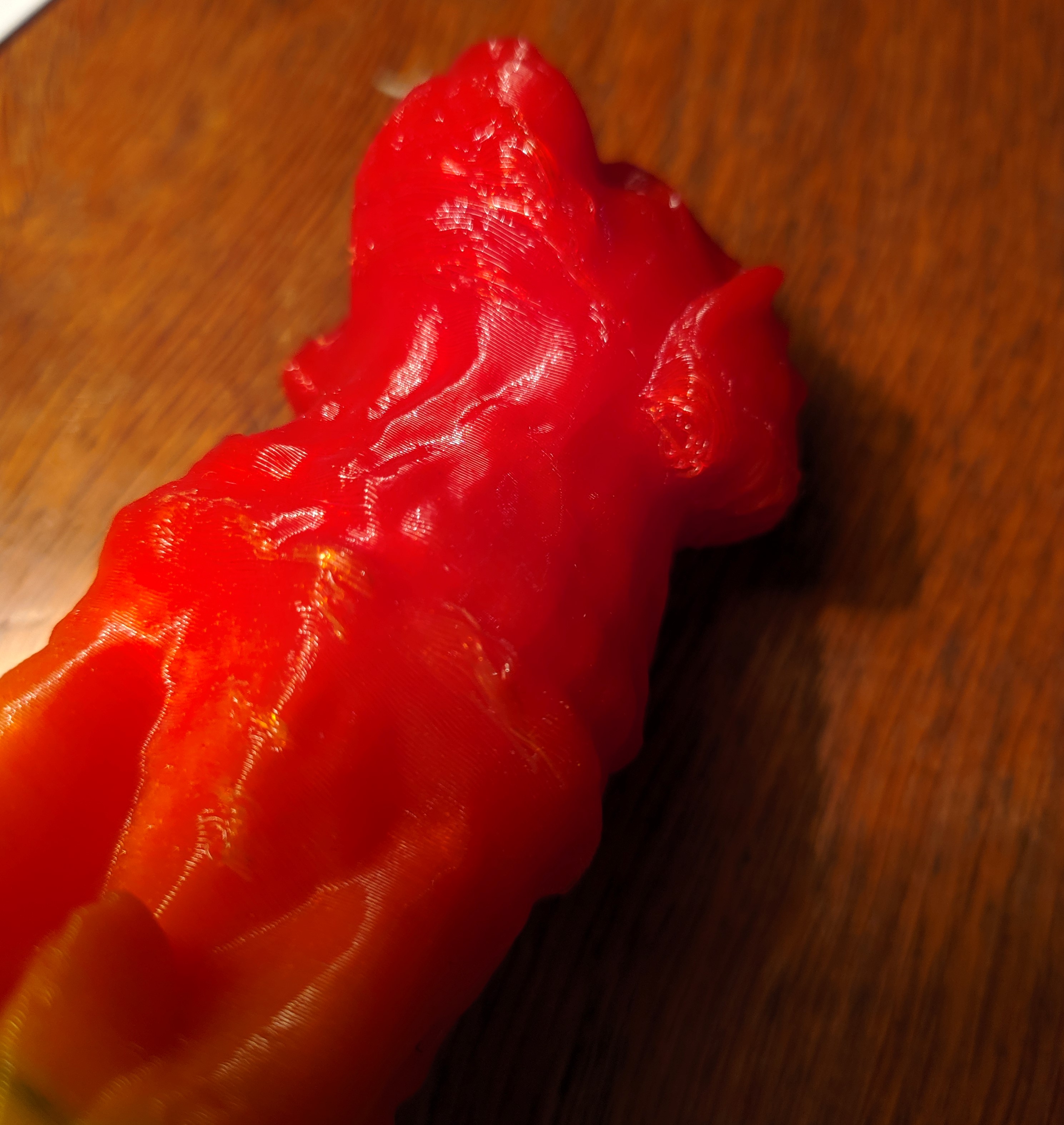 Вот что получилось. На ушах, морде и других нависающих частях есть небольшие размытости. Внизу модели непонятная тёмная полоса. Но наверное для первого раза это неплохо.