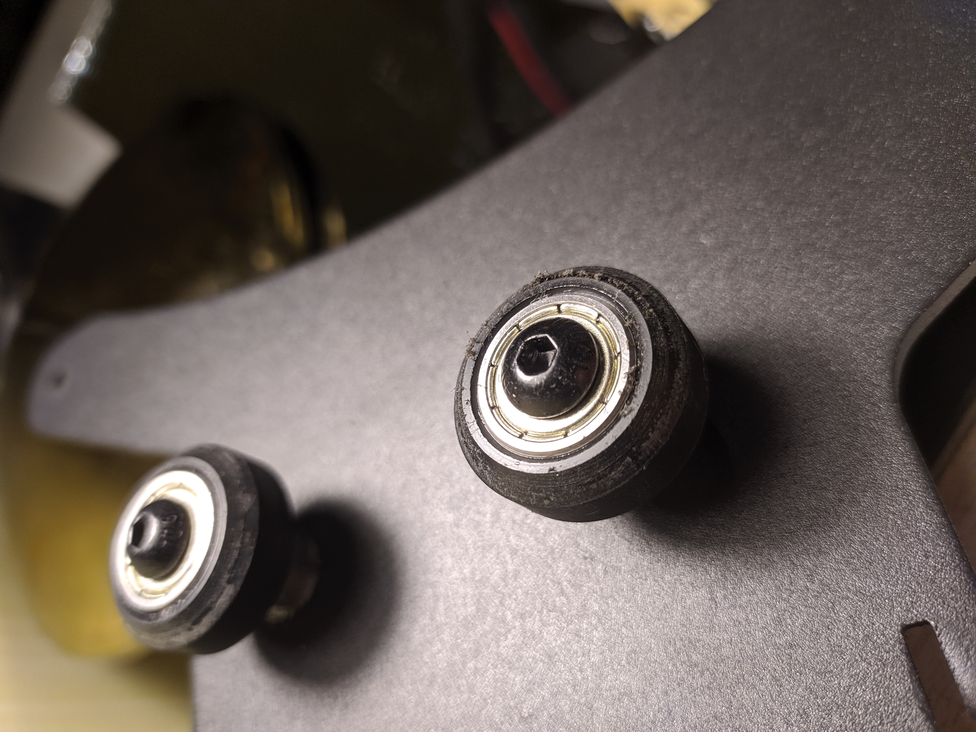 Добился сдавливая на ослабленных и потом затигивая винты, что между двумя паралельными вертикальными направляющими снизу 24.15мм и сверху 24.25мм, а было 24мм и 24.75мм. Настоил балку X, теперь растояние от горизонтальной балки слева и справа до основания отличаеться на 0.3-0.4 мм, а была разница в 1.6мм. Настроил каретку стола, ослабив роллики, но так чтоб без люфта. Ослабил роллики на корретках гориззонтальной балки, но тоже чтоб без люфта, там 6 ролликом. Вообще с настройкой балки X больше всего проблем, потому как надо снимать верхнюю планку.