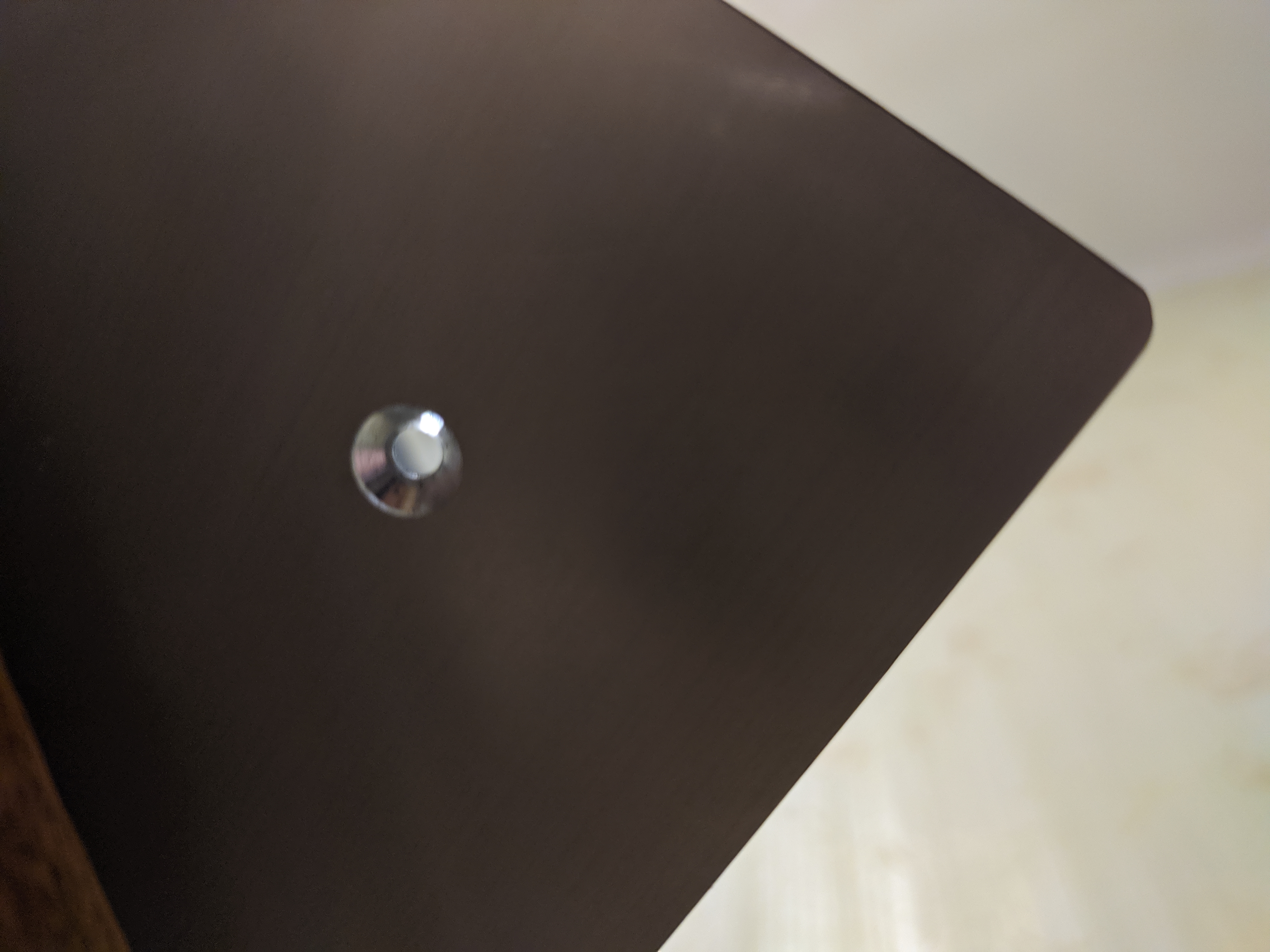 Проще говоря, отверстие под винт должно быть заметно больше, чем винт, чтобы при расширении стол не погнуло...