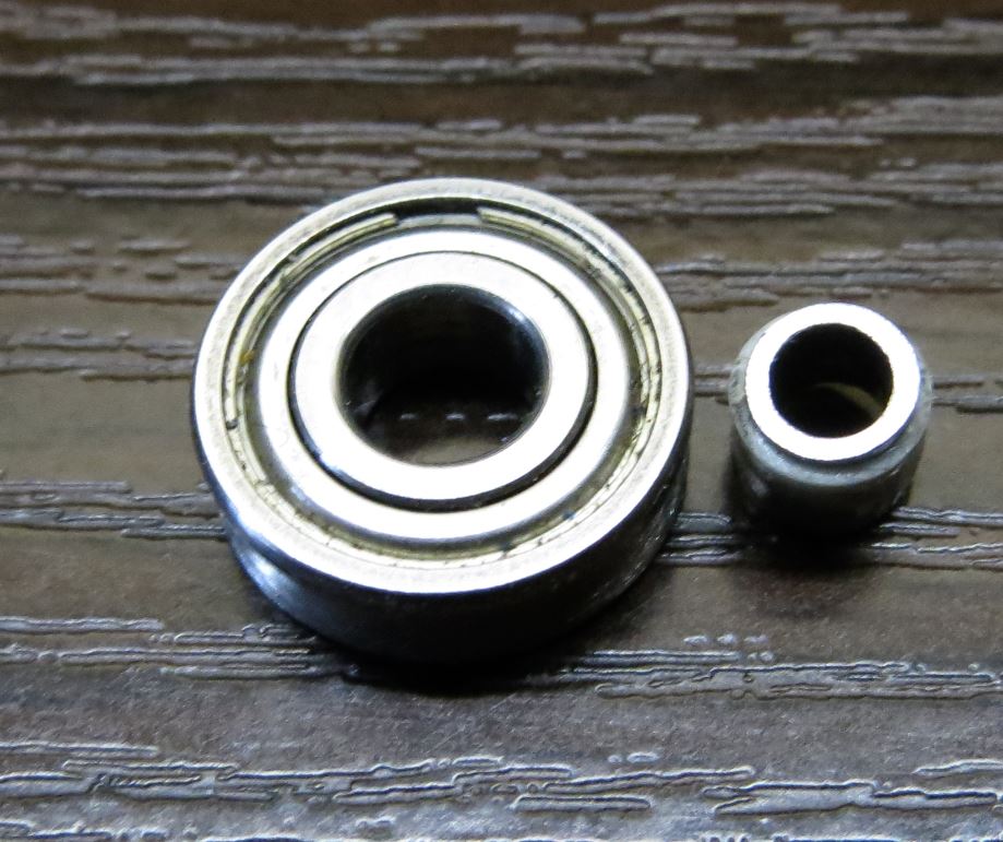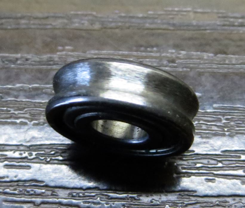 Это вряд ли. Снаружи его не видно, а разбирать ради фотосессии неохота. Да и что там смотреть, обычный подшипник с неглубокой ложбинокой, буквально миллиметр. Делается легко: подшипник ставится на ось, и под небольшим углом к нему прижимается или дремель, или сточенный диск болгарина. За счет угла подшипник и крутится, и точится. Главное вовремя остановиться.