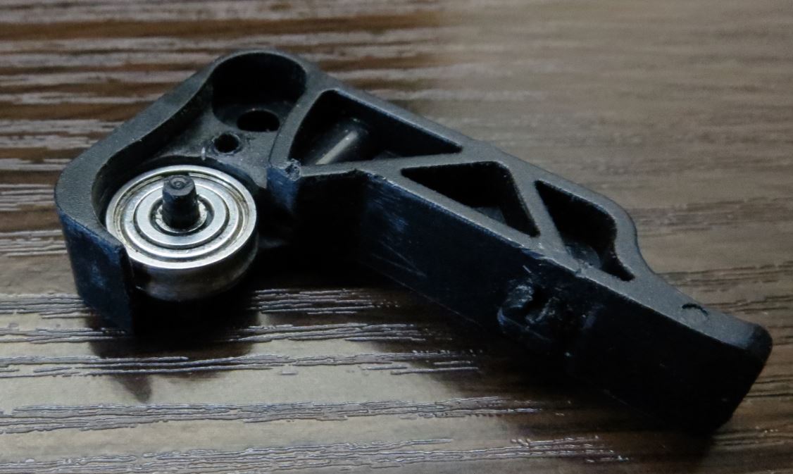 Я у себя на пруше выкинул нафих этот бороздатый подшипник и сделал аналог сам. Взял простой подшипник и болгарином проточил на нем НЕГЛУБОКУЮ канавку, чтоб только пруток не сваливался вбок. Оригинальная канавка очень глубокая, мягкие пластики плющатся и не подаются. А с самодельным роликом все стало просто отлично.