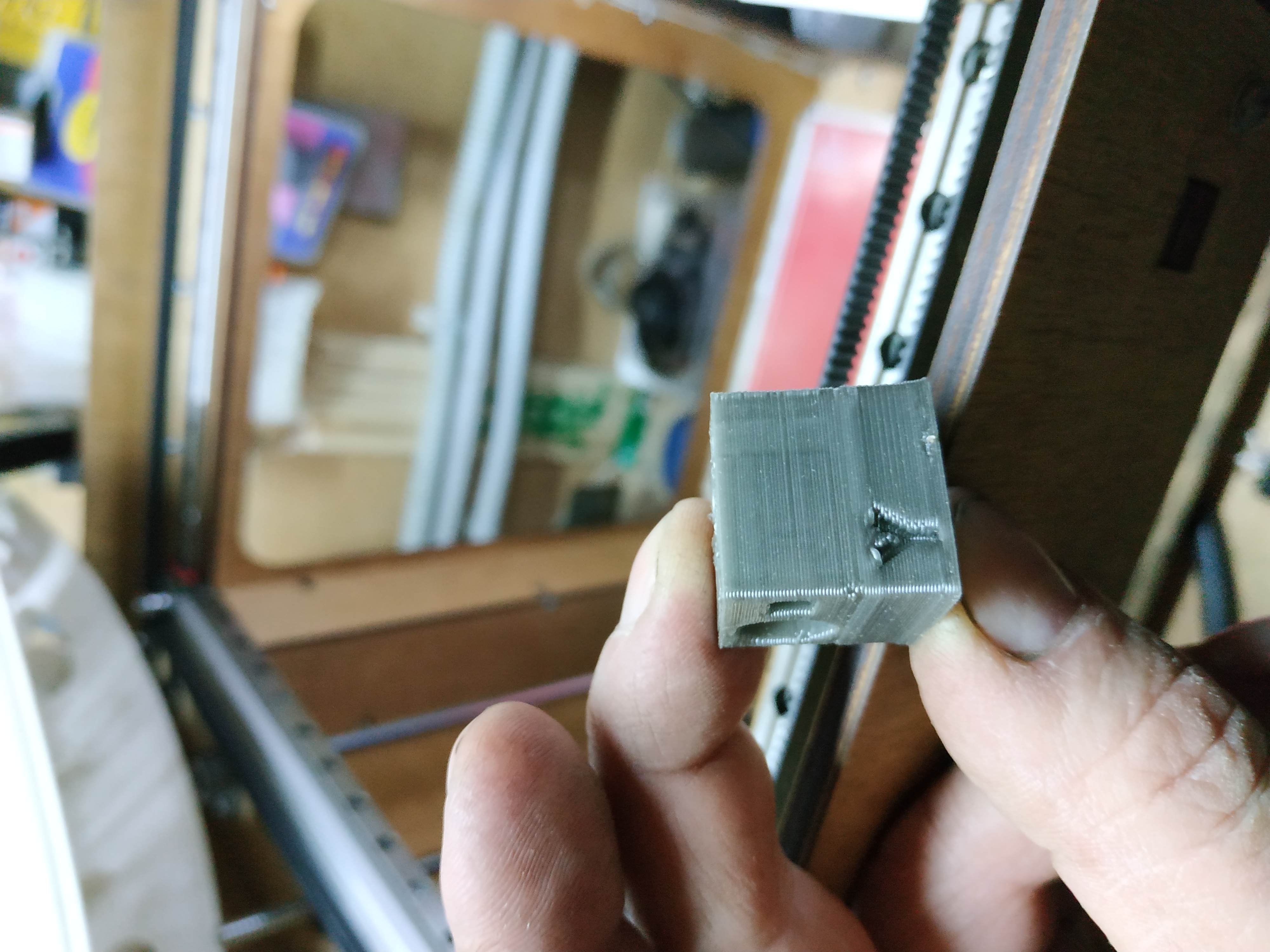 получаю вот такой результат. Явная недоэкструзия на завливке плоскостей. НА первом образце