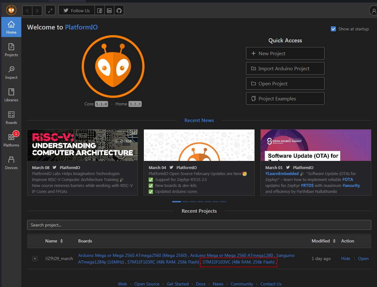 Тем более, когда открываю PlatformIO и вижу там свой проект и поддерживаемые доски, то там есть такой контроллер, посмотрите вложение. Или я опять не прав?