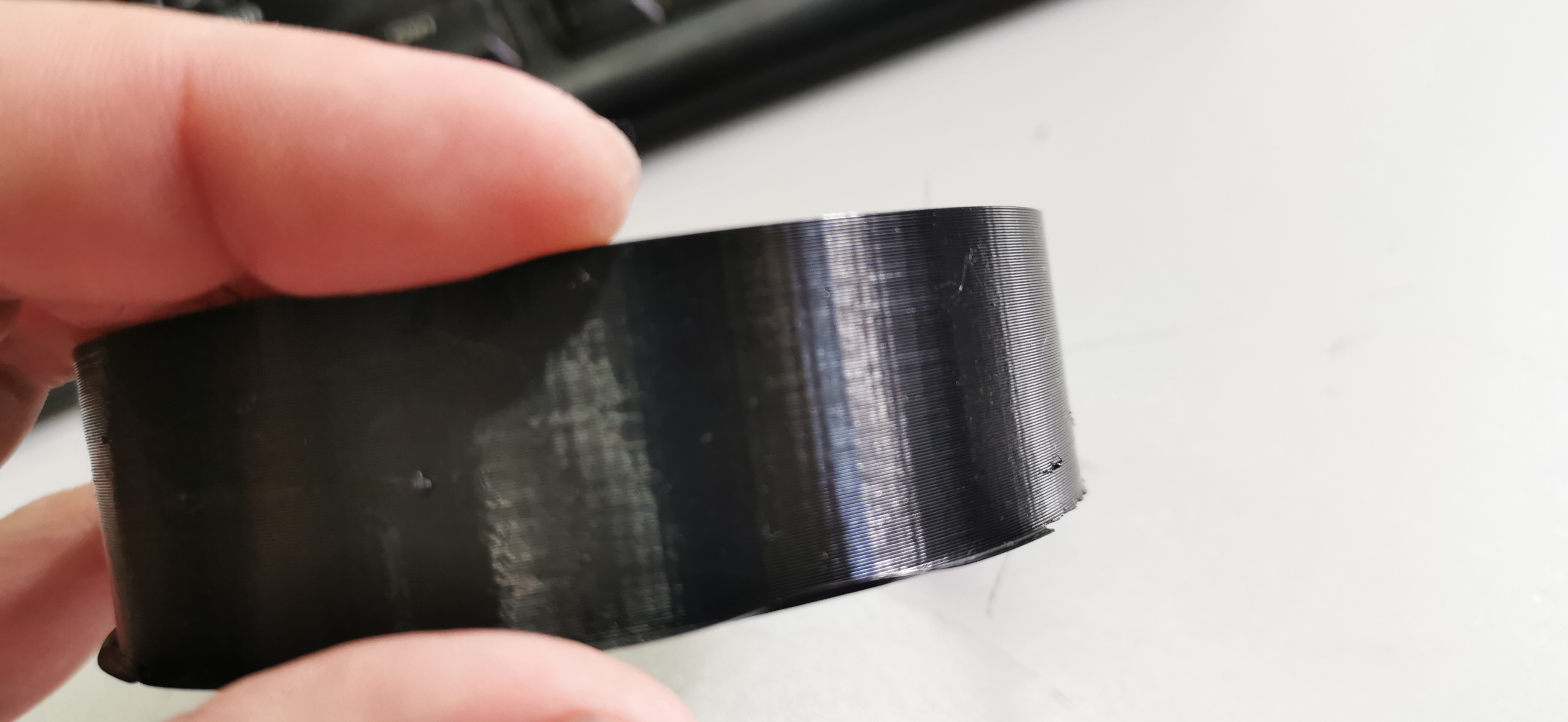 Господа - вот давно есть такой баг на петг - если печатаем кольцо или похожую на него форму - при печати внешней стенки всё ок, а вот при печати внутренней стенки за соплом идет сопля, которая как бы срывается с модели и пересекает кольцо по хорде. В результате с внутренней стороны всегда волосня....
