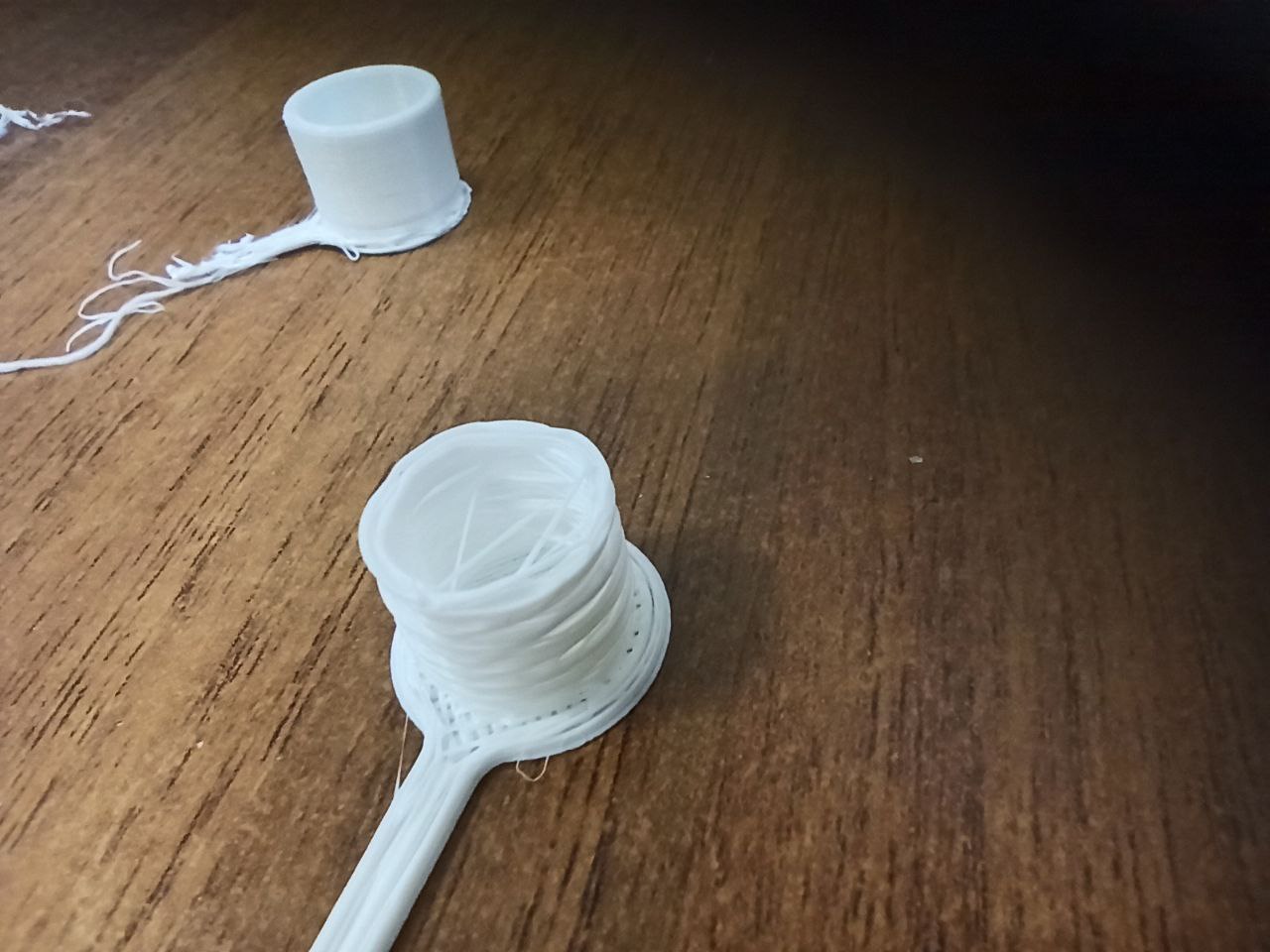 и никакими корешками. ИМХО скорость печати нижних слоёв была очень высокая что то порядка 120-150. верхние печатались медленно и видимо потому напечатались качественно