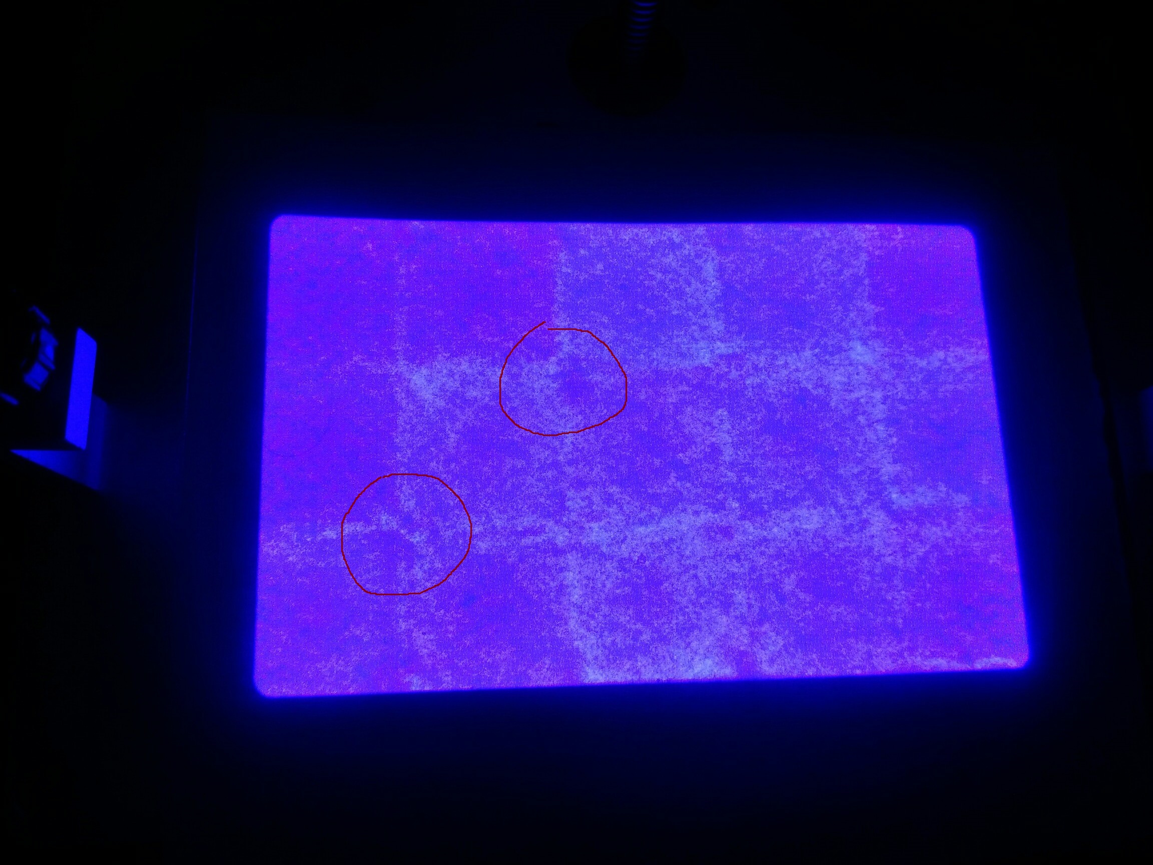 По поводу засветки - результат на фото. Положил лист на экран, на просвет видно 2 небольших пятна. Ну и в целом какая-то сетка видна при просвете. Не знаю, критично ли это :?