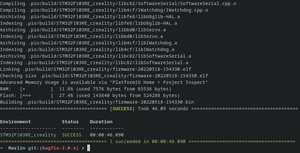 Компиляция (platformio core) под ender-3 (bugfix-2.0.x) проходит успешно: