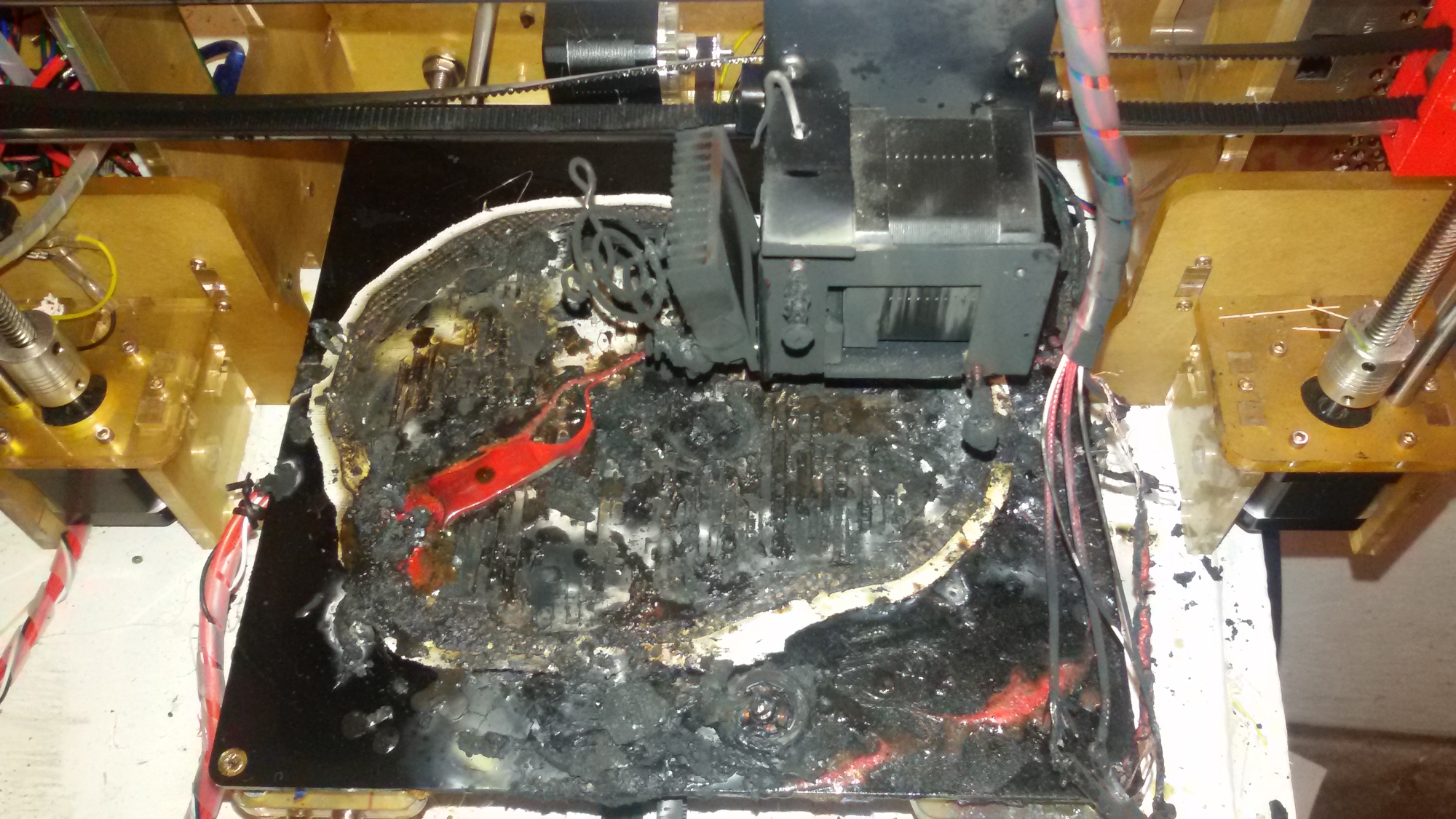 Печатал большую модель >20 часов, оставил на ночь на работе, утром увидел вот такую вот картину: