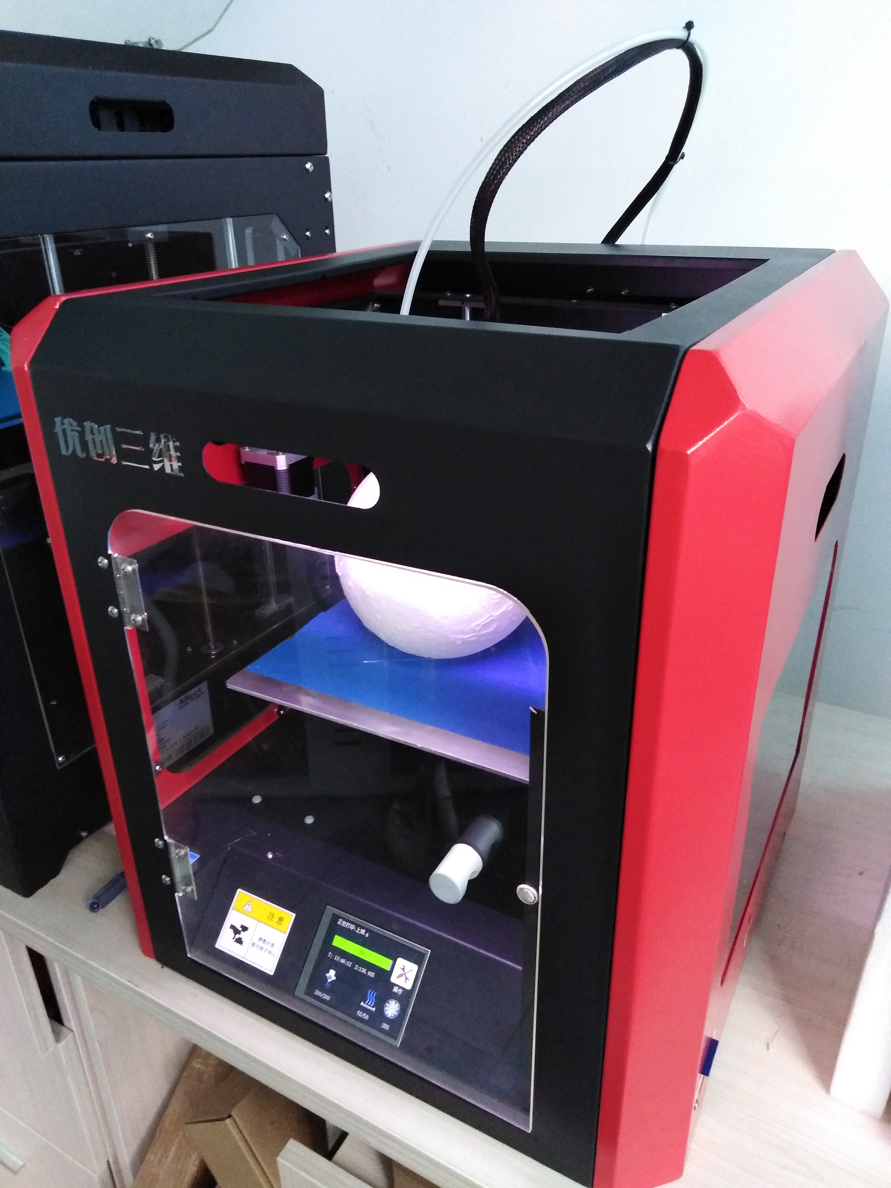 My printer adopts FDM printing technology, the structure is makerbot, the body is made of integral sheet metal, and the optical axis is m8 and m10. The highest printing precision is 0.05mm, and the usual printing precision is 0.1mm.