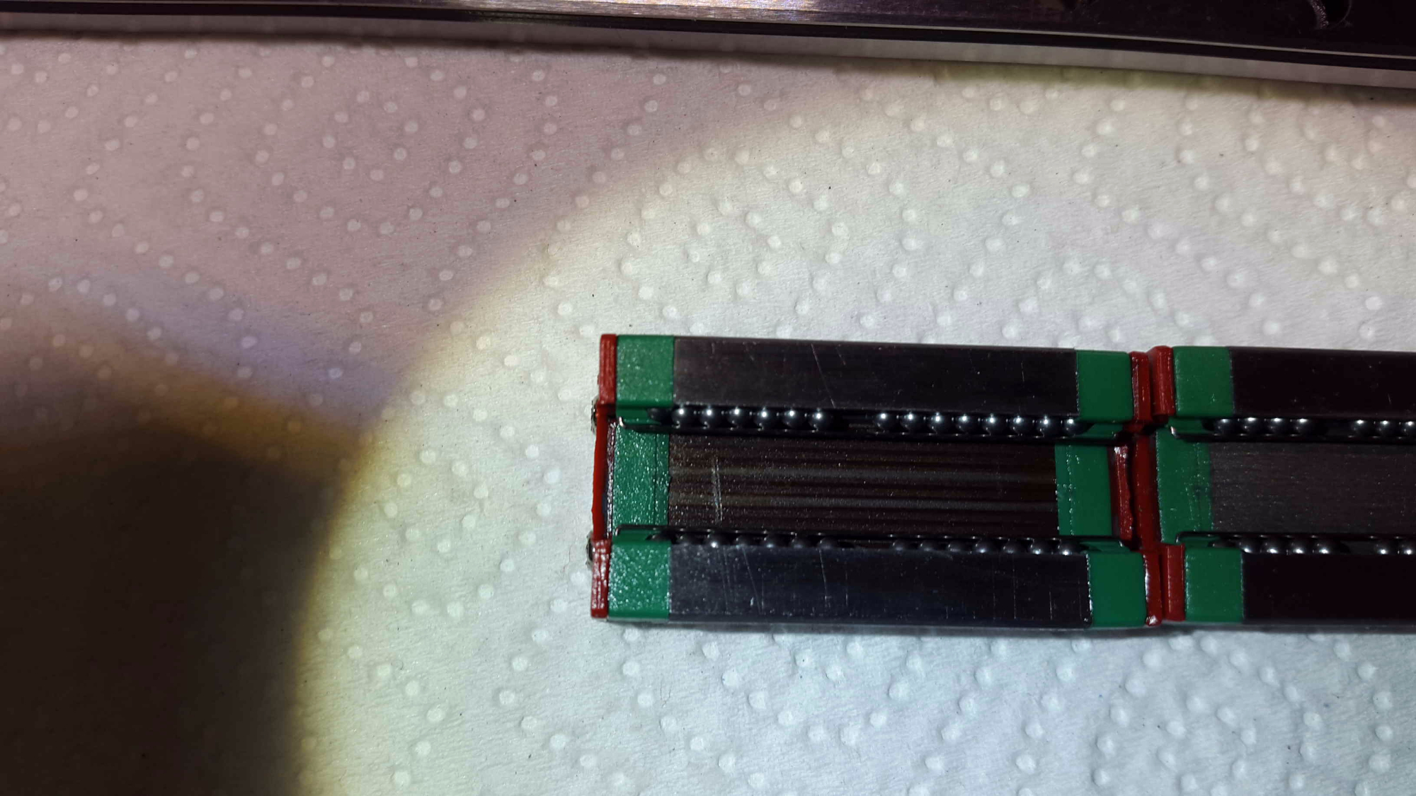 Посмотрел внимательно на рельсы и каретки, на каретках такое ощущение, что по шарику не хватает с каждой стороны... Но каретки при движении вроде не клинит.