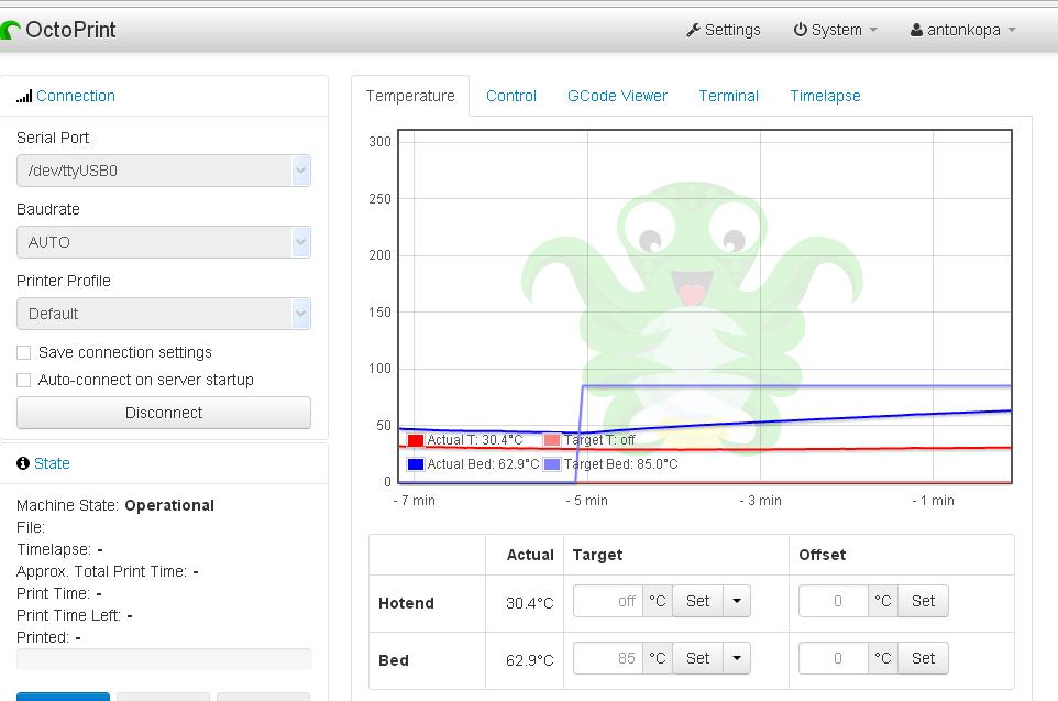 При попытке начать печать как обычно все печатает нормально, но как только подключаю малину и пытаюсь начать печать через веб интерфейс нет экструзии