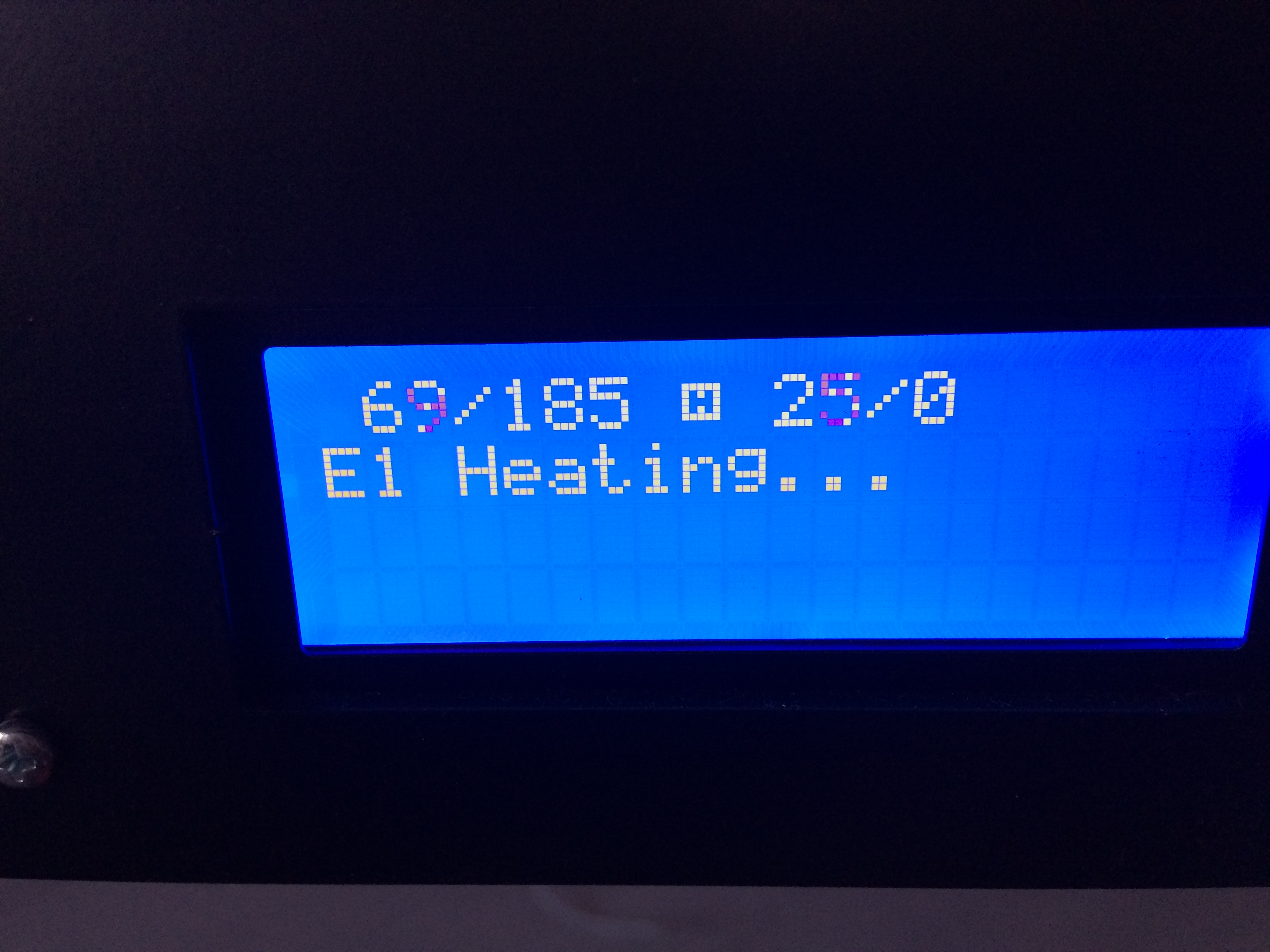И на конец сегодня утром запустил. На всякий случай протестировал нагрев экструдера и проход нити пластика - ок. Не успел остынуть экструдер, я нажал кнопку печати (тестовый кубик) и...