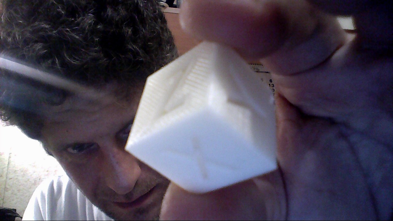 Кубик понравился. Сам не ожидал. Единственное нижняя грань неравномерная немного. Стол не выровнил нормально. Зато буквы четкие, углы незаплывшие. Геометрия сошлась. Припечати лязга нет вообще. Единственное странный звук несколько раз на больших диагоналях (внутри 25% заполнение) как будто железом по стеклу. Появился первый раз где-то на середине высоты. И звук идет от сопла... как будто оно по стеклу скребет.