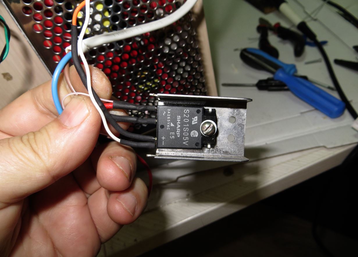 Твердотельное реле ШАРП на 2 ампера (стол потребляет 1 ампер). Подключил через сопротивление 1 ком на разъем для нагревателя стола - там коммутируется 12 вольт. Для этого входной разъем подачи питания на РАМПСЕ соединил "+" с "+" - входного разъёма для управления механикой. Прикрутил твердотельное реле на стальной радиатор. Его хватает, так как реле при таком токе еле теплое.