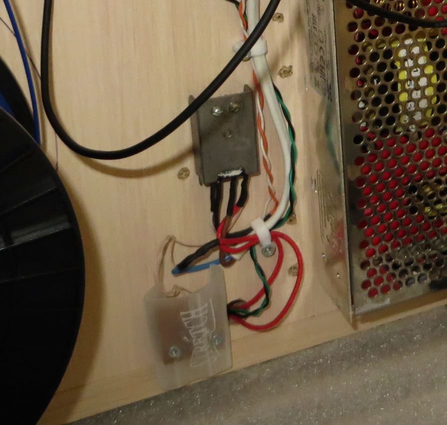 Рядом с отверстием для выхода кабеля поставил неоновую лампочку через сопротивление 1 Мом - показывает подачу напряжения на нагреватель стола.