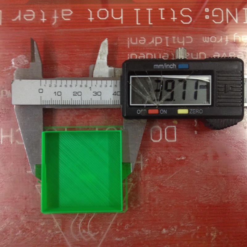 Размер по горизонтали немного некорректен, т.к. я поджал штангель выше основания и продавил стенки (позже перемерил, там 39.89).
