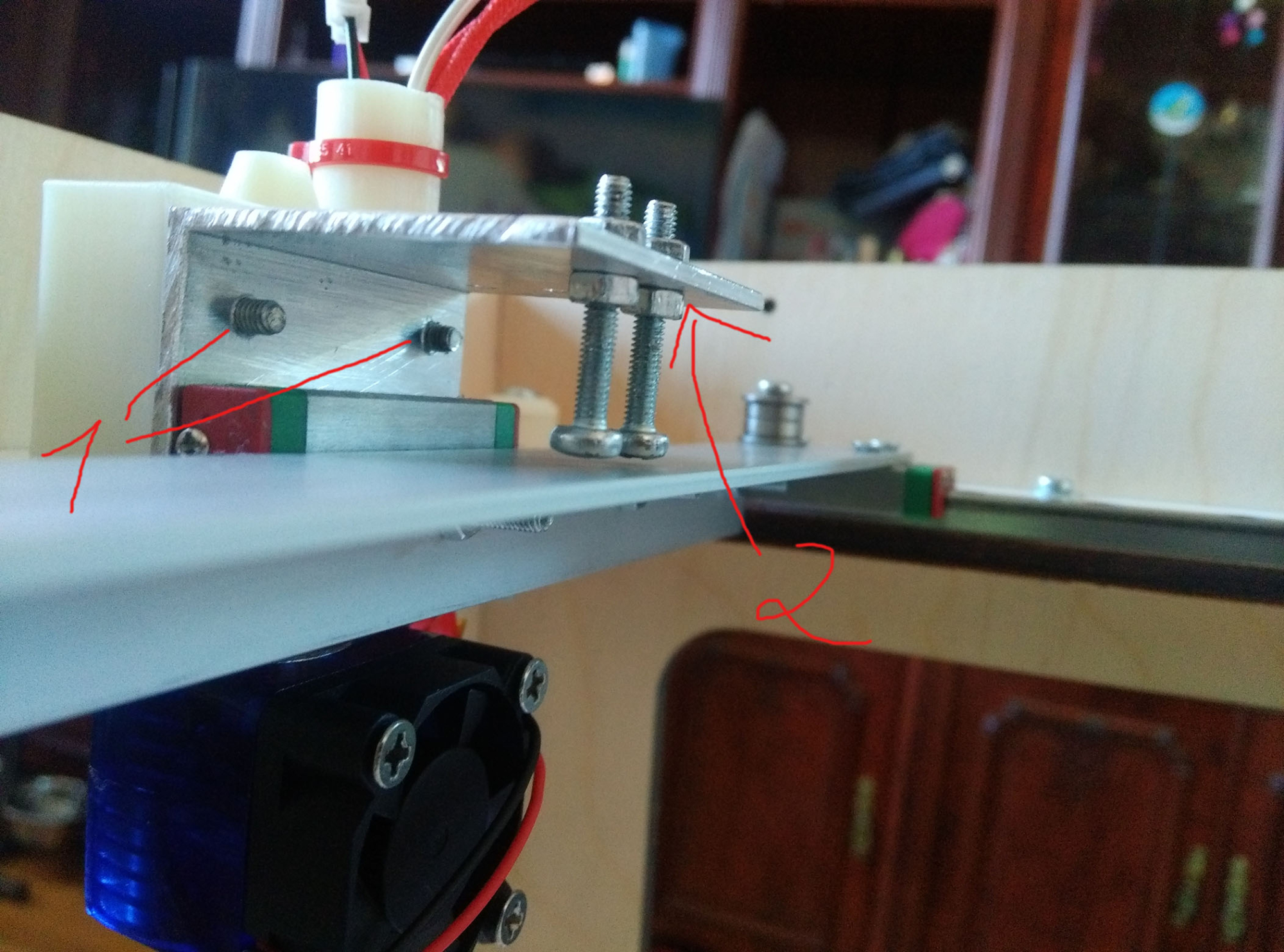 Вот, вроде ровно получился:) Вроде ничего, что выступают винты 1 ? И так фиксировать винты 2 ? Деталь 1 для У концевика, а деталь 2 ? И по отверстиям в постели так и не понял, зачем они ? И стол с постелью соединяется латунными втулками, типа как для материнки ? А пластиковые детальки , как шестеренки это ножки пастели ? Если что можно и здесь в шапку добавить детальки для 233, только надо точно со списком определиться.