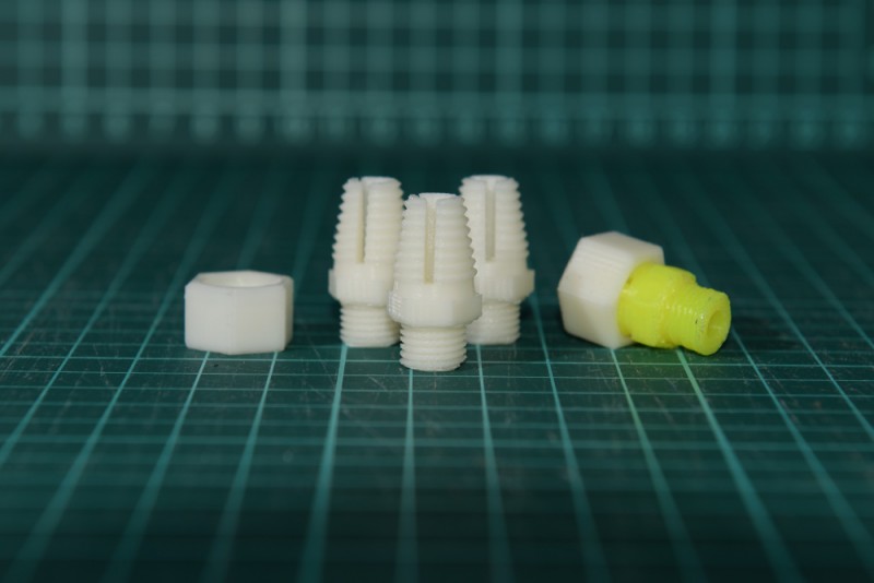Думаю можно рассматривать как вариант тюнинга для сохранения трубки и незначительного уменьшения стоимости заказываемых деталей. Хотел даже интегрировать в модельки держателя e3d и экструдера но напечатанная резьба на удивление отлично держалась в пластиковой детали. Решил оставить как есть, чтобы в случае поломки не перепечатывать всю деталь, ведь из ABS, в отличии от нейлона, они получаются хрупкие без трубки.