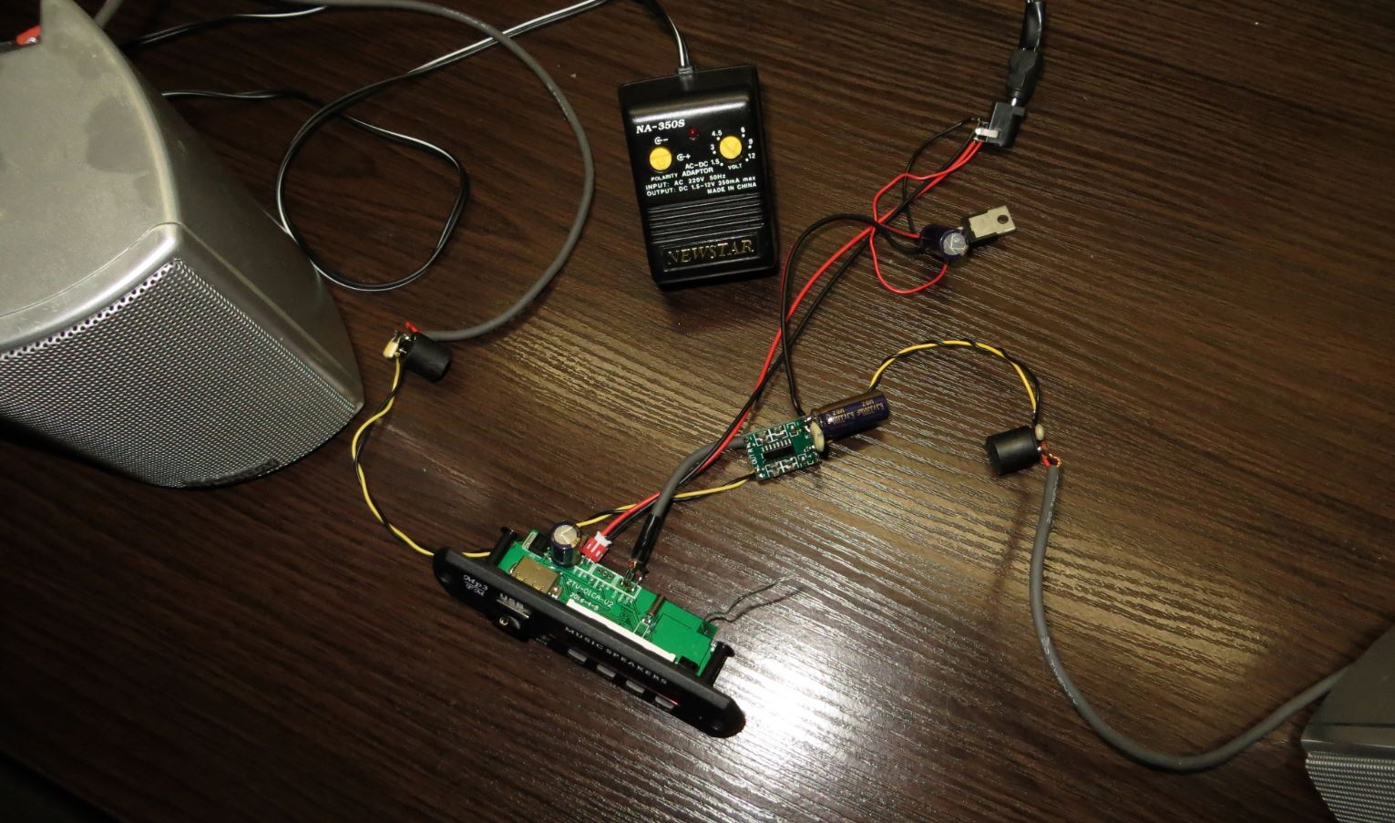 У меня, так как в ФМ блоке стоит кренка - то подавать надо 7-9 вольт. Чтобы использовать один Блок питания- использовал нестабилизированный блок питания на 8-10 вольт на 350 мА (мало , но всё работает). Сперва решил , сделать по-быстрому - подпаял на 5 вольт после кренки на ФМ блоке. И...... усилитель подсадил напряжение и микропроцессор на фм-блоке постоянно ре-стартовал и не запустился. Пришлось паять еще одну кренку на 5 вольт , только для усилителя. Поставил на усилитель после кренки сперва 470 мкф-10 вольт. Ну и всё запустилось - ФМ все станции нашлись. USB-флешка прочиталась. Всё подпаял штатными проводами (20см длиной) которые шли в комплекте. Всё заиграло - но в уши полез ВЧ мусор.