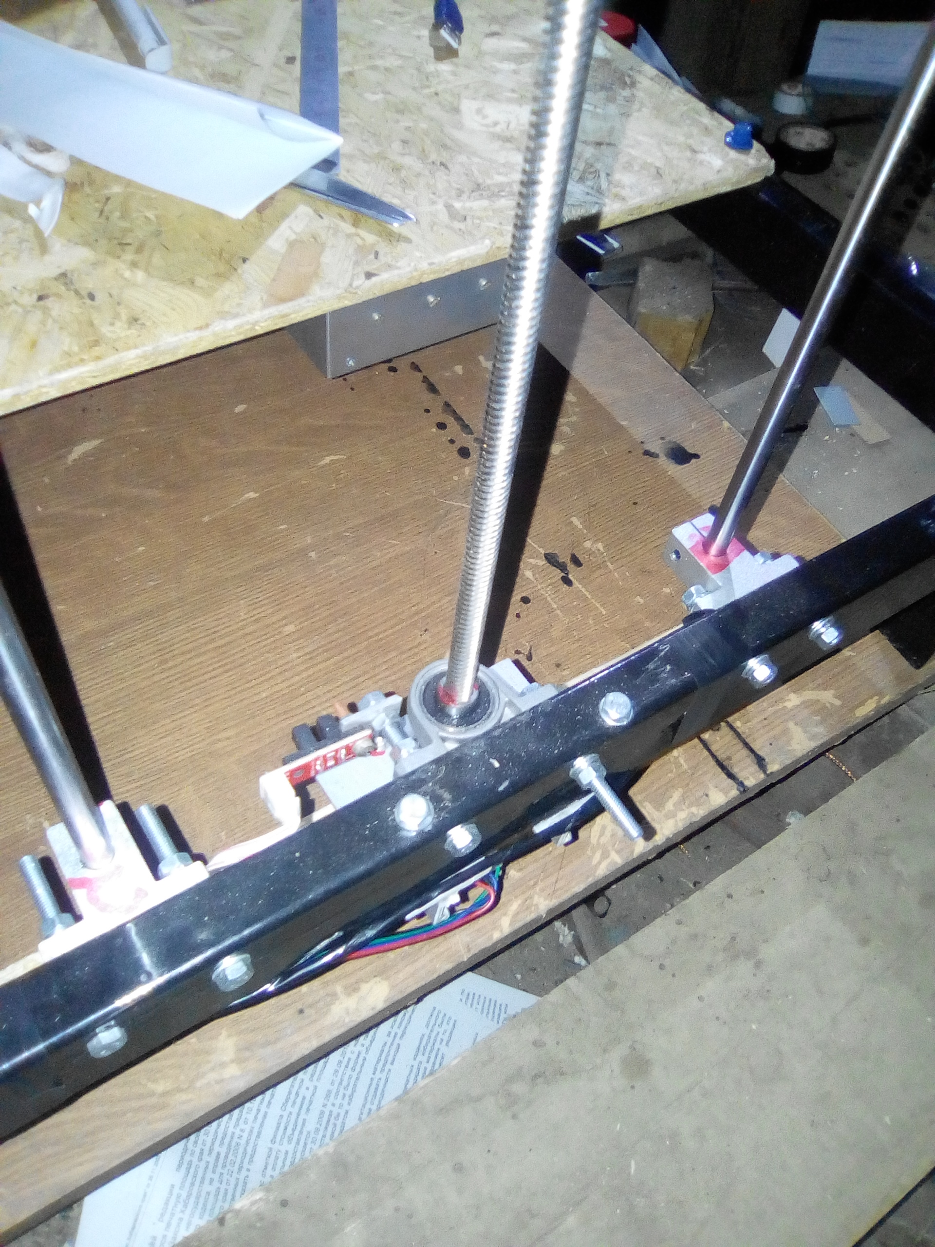 Крепление стола к оси Z весьма интересное... И подшипники не зажимает, и в то же время четыре точки опоры. Из чего эти упоры? фабричные? Навряд ли....