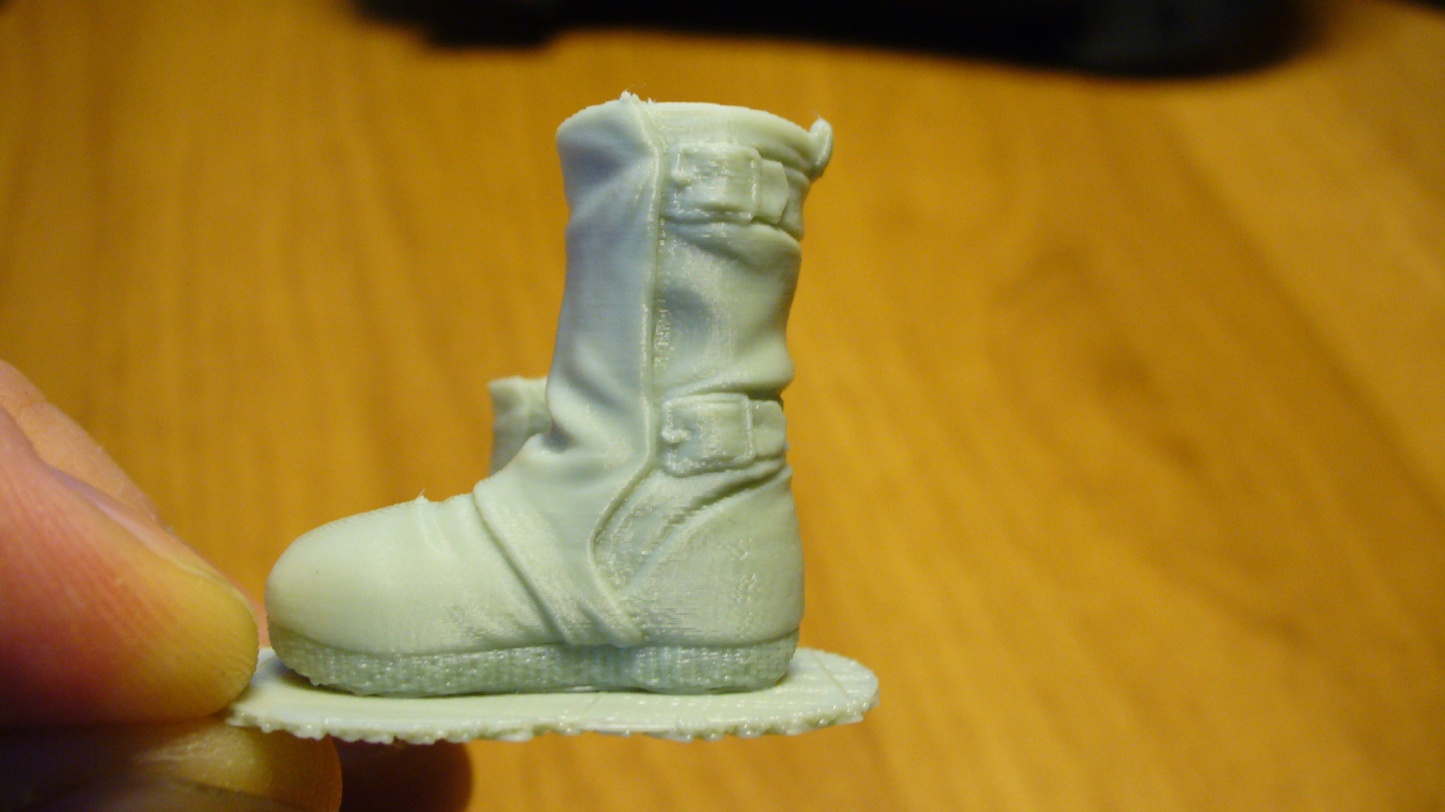 Я печатаю на профильном кубике. В моей ветке хватает моделек, буду добавлять еще. Сапог на кубике не печатал, но печатал на предыдущем принтере - железном прусе, мелким соплом результат был получше, хотя может потому что я слой ставил 0.05 и ускорения 4000. Если нужен сапог с моего принтера - в ближайшее время напечатаю обязательно. Сейчас я на своем хочу поставить втулки вместо подшипников на ось Y потом можно и сапогом заняться.
