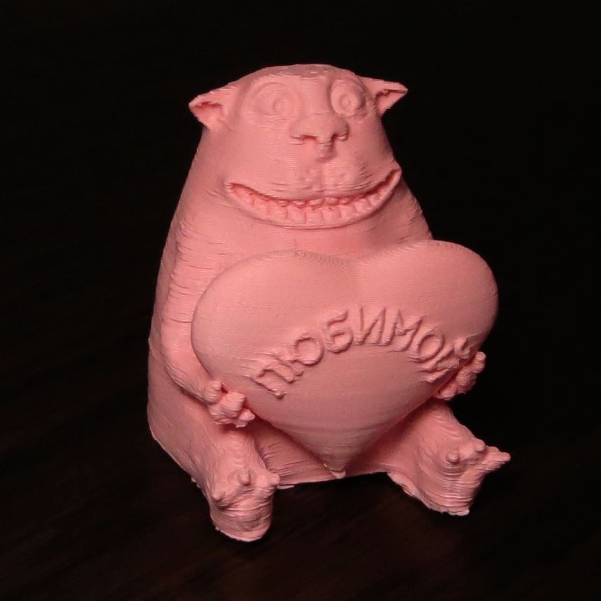 Вот собак без пост обработки - достаточно всё ровно печатает розовым пластиком - проблем гораздо меньше чем при печати - серым металлик.
