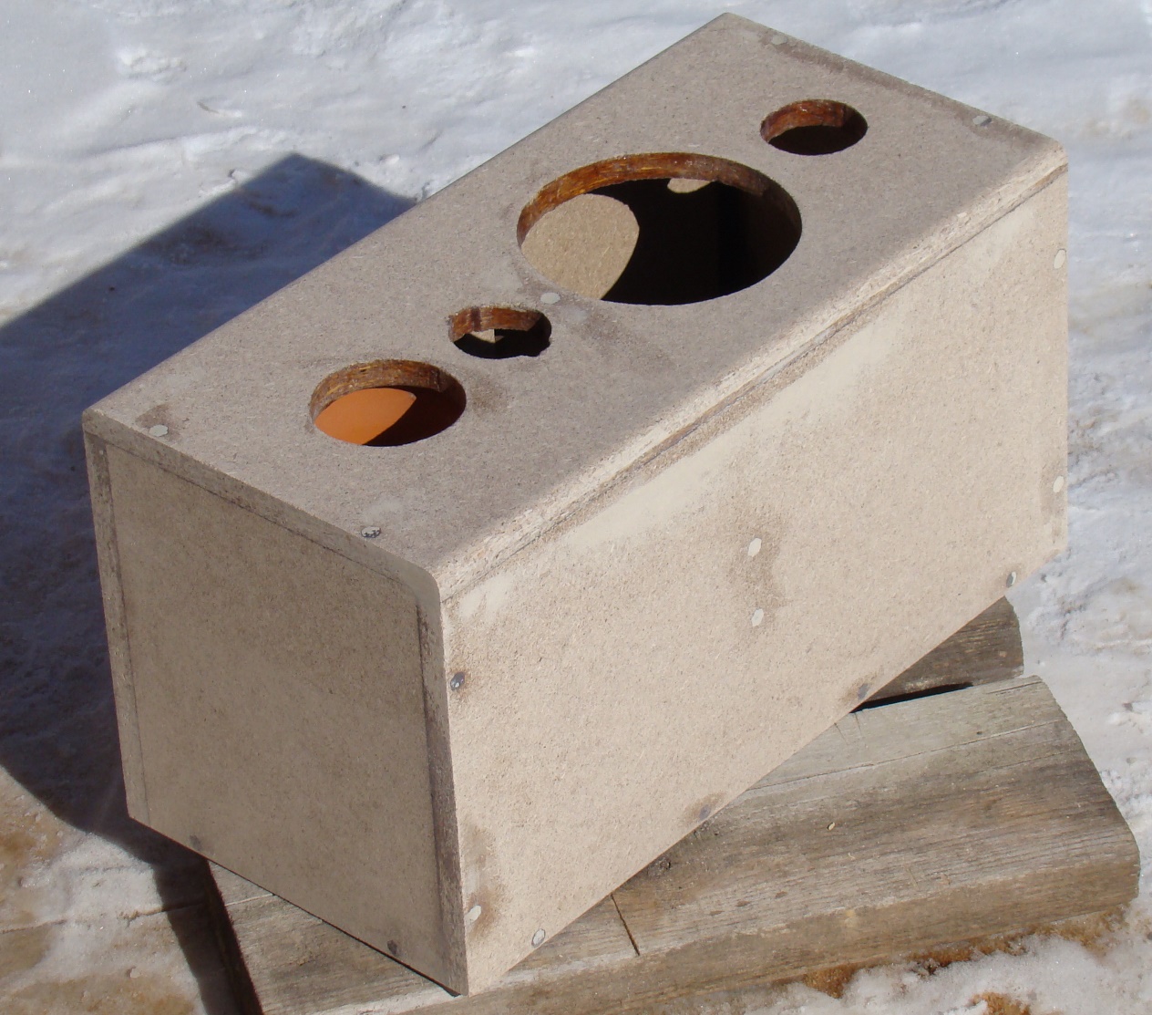 У меня тоже пара мусорных есть - тупо в кубики 20х20х20 когда то давным давно вкрутил пару 13-ек автомобильных :) Думал играть будут. Ну они и играют... Герц от 300-т. Зато мелкий этот объем до того хорошо их "держит", что всякие "пуки" и перегрузы проходят бесследно :lol: