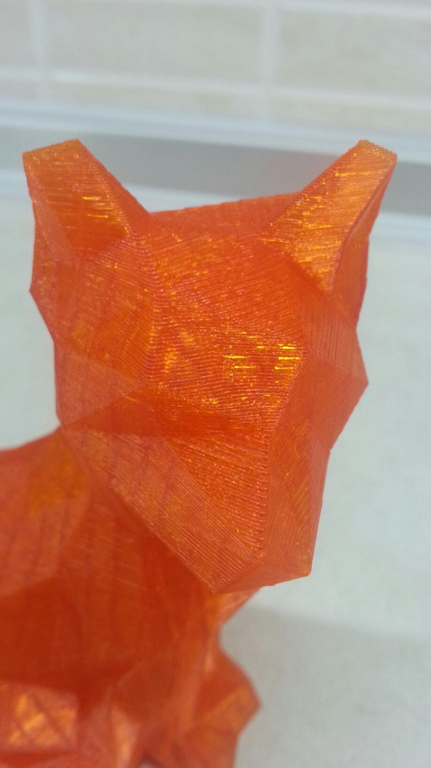 Сегодня опробовал SBS Glass. Классный материал конечно по эффекту визуальному. Напечатал лису низкополигональную. Слой 0,25. Заполнение 25%. Температура 230/80.