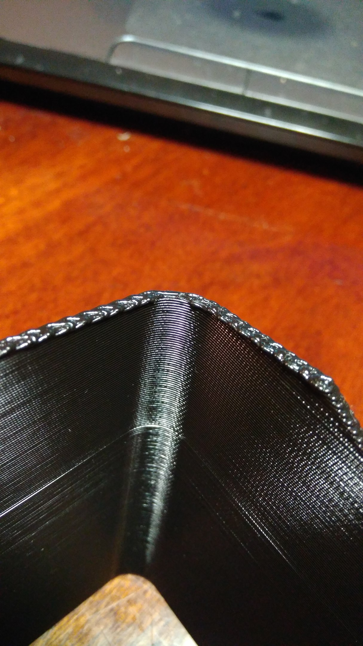 При этом ретракт вроде работает, два синих столбика, пластик PET-G бестфиламент, есть этот же наплыв на углах перед ретрактом.
