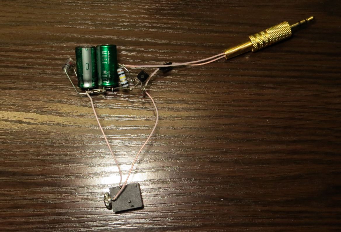 Перепаяв кучу схемок вот вариант с очень хорошим звуком - пытал пять динамических микрофонов - несколько Октав, Филипс, LG, prof Vitek. Для разных микрофонов для звука подходят разные марки конденсаторов. У меня самый лучший звук получился у Октавовского динамического микрофона МД-45 1969 г.в. с конденсаторами Ничикон MUSE и транзистором S9014 (на корпусе с9014). Ставил и пленочные конденсаторы высшего класса до 1,5 мкф - но с ними звук понравился меньше , чем с Ничиконами. Причем пробовал и биполярные Ничиконы 33 мкф, пробовал конденсаторы РОЕ в бакелитовом корпусе 1000 мкф, SME, ELNA silmic2 , Панасоник - всего около 10 разных конденсаторов разных марок и номиналов . Но в данном приложении Ничиконы отыграли лучше всех. Звук с динамическим микрофоном имеет свой шарм - и при помощи этого однотранзисторного микрофонного предусилителя можно заставить хорошо звучать динамические микрофоны и на обычный вход на встроенную звуковую карту компьютера. Б.У. динамических микрофонов от караоке продается просто море на барахолках.