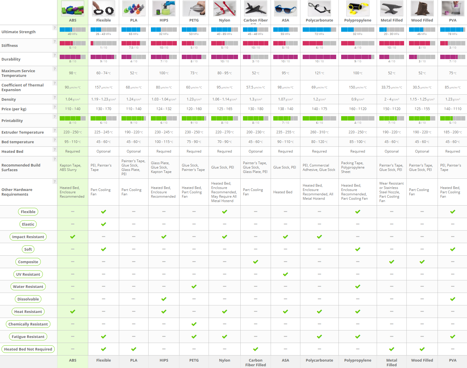 Таблица сравнения свойств полимеров для 3D печати (https://www.simplify3d.com/support/mate ... ies-table/)
