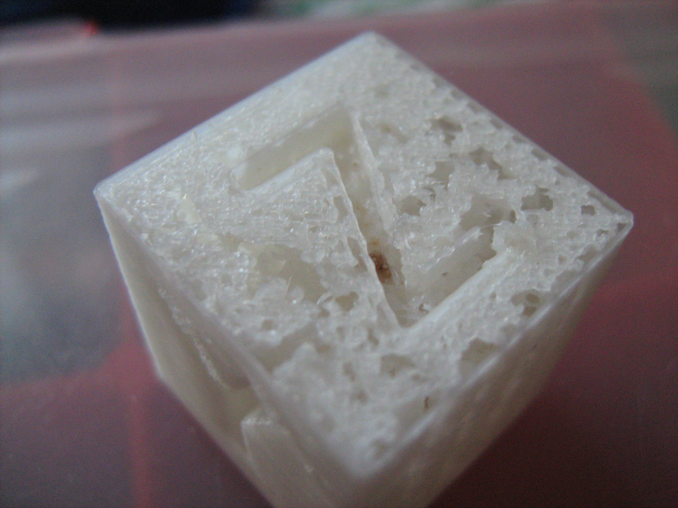 Напечатал кубик 20мм. Крыша не получилась, что за дефект?