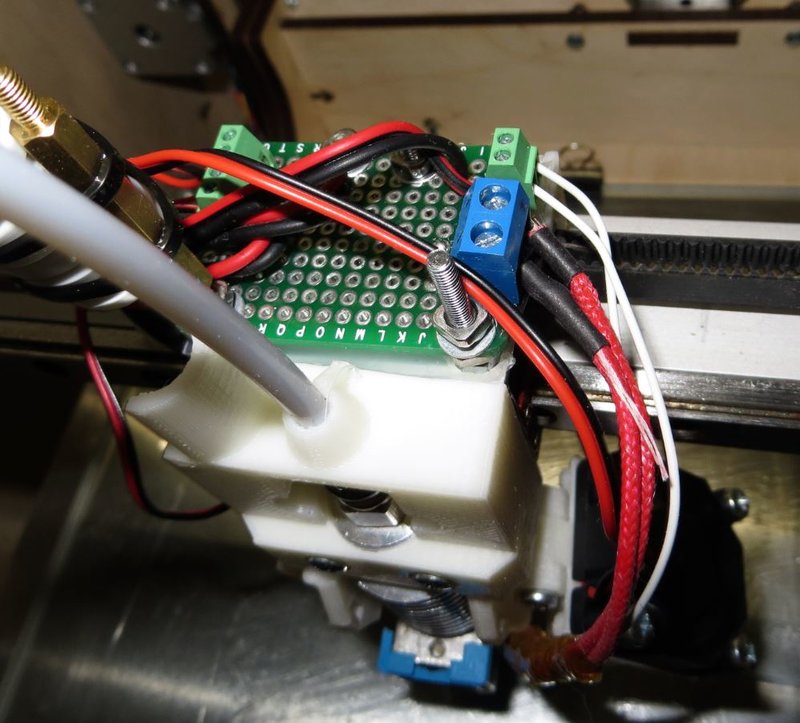 Туда как раз два контакта нагреватель и два - термистор. Очень удобно и обслуживать, и даже махнуть хотэнд целиком (всегда один в шуфлядке наготове лежит). Особенно стало удобно с блоком вентиляторов: открутил два винтика - блок отвалился, хотэнд тоже - делай с ним что хочешь