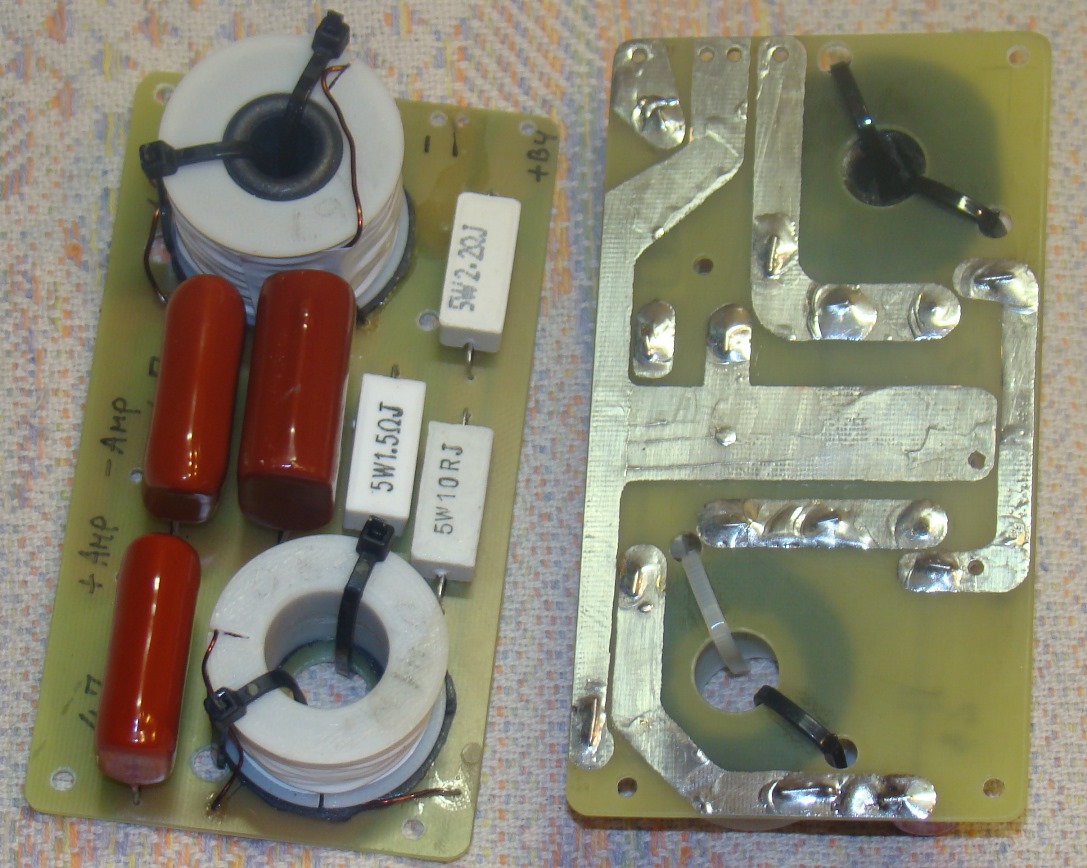 Кроссоверы собрал на печатках -так быстрее, чем навесным монтажом. Деталей больше чем по схеме- потому, что не было номиналов